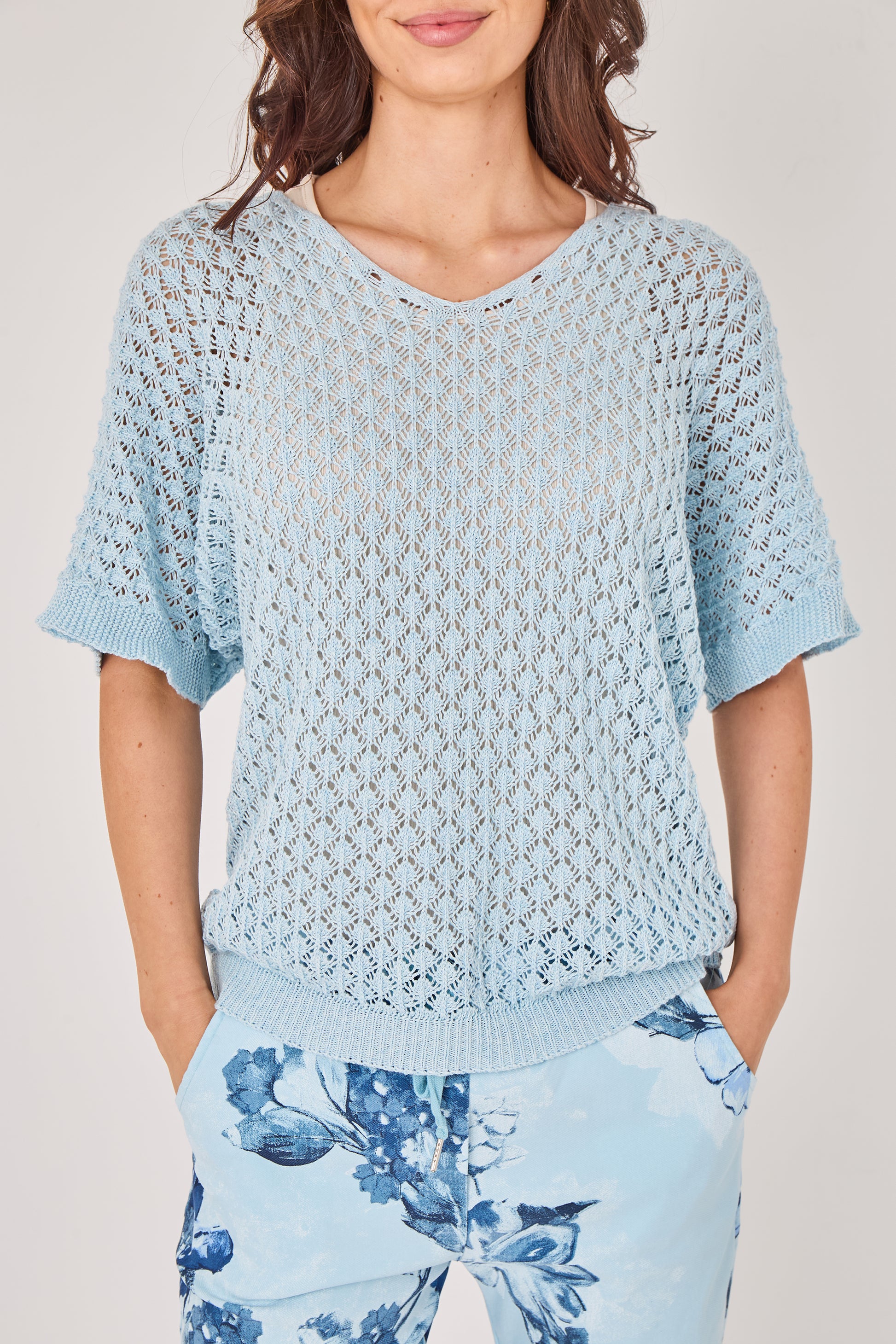 The V-Neck Crochet Short Sleeve Top blends delicate texture with an easy, flattering silhouette. Featuring intricate crochet detailing and short sleeves, it’s perfect for lightweight layering and effortless seasonal styling.