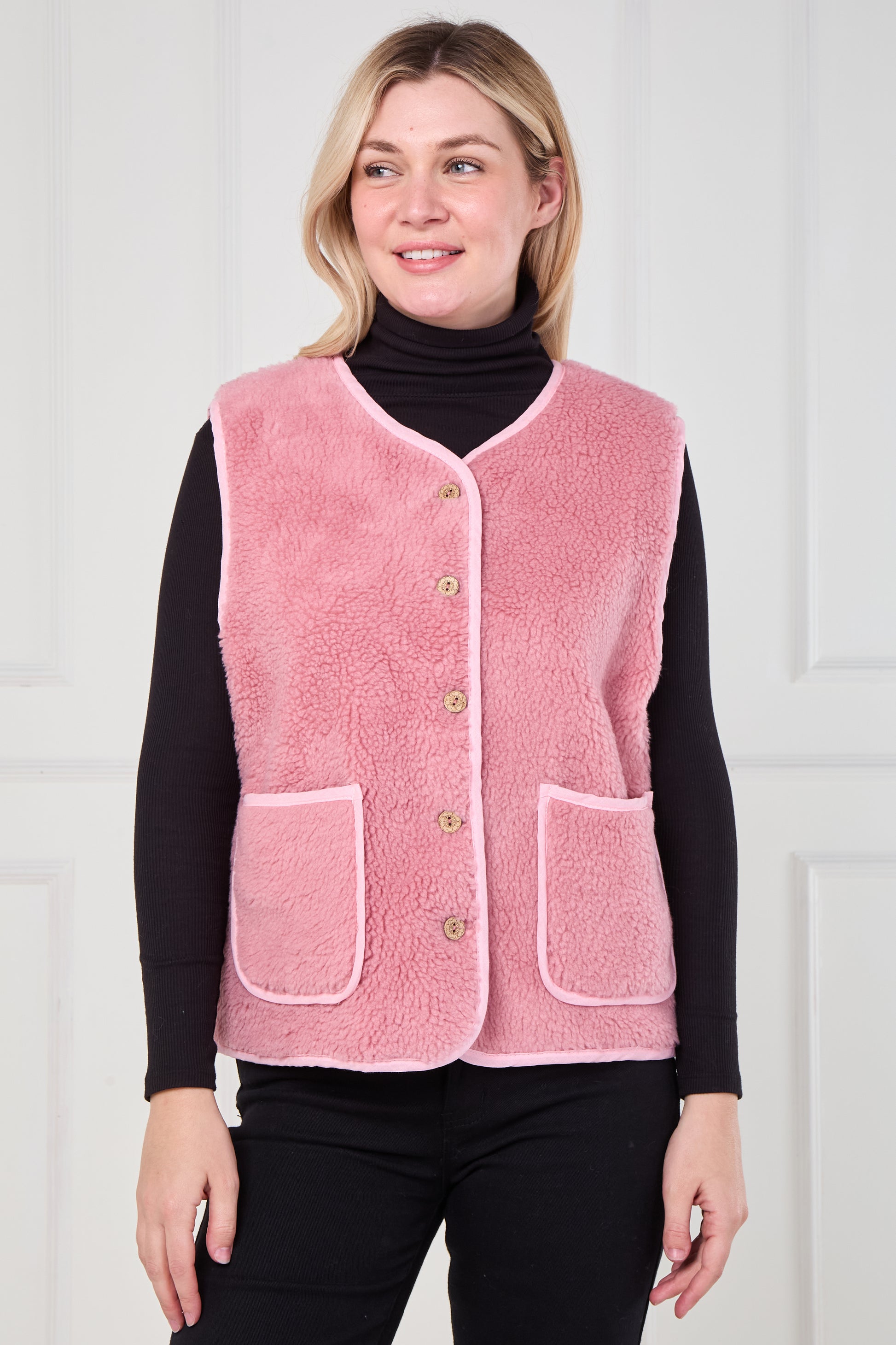 Stay warm and stylish with our Teddy Fleece Vest — the ultimate throw-on-and-go piece for chilly days. Featuring soft, plush fleece, functional pockets, and button fastening, this vest is perfect for layering over knits, tees, or long-sleeve tops.