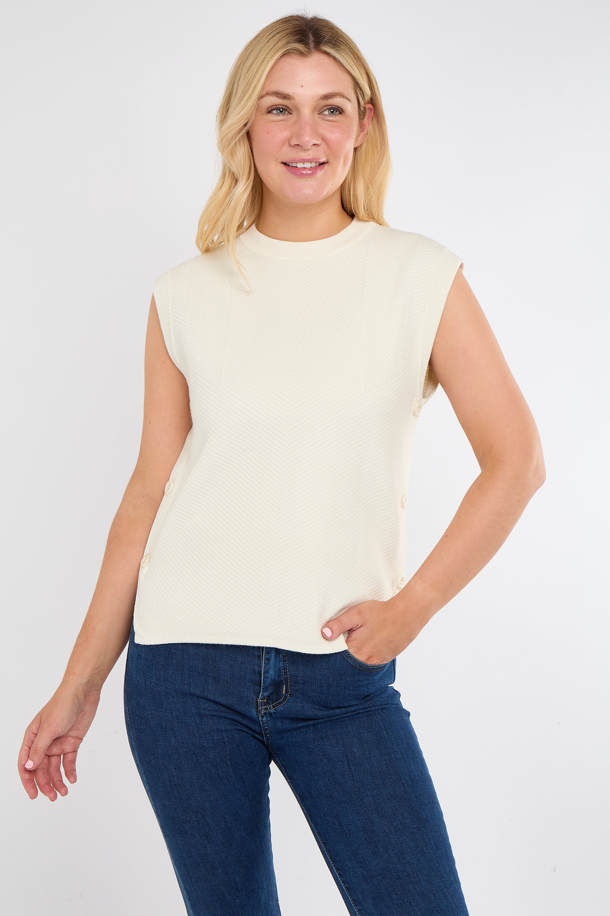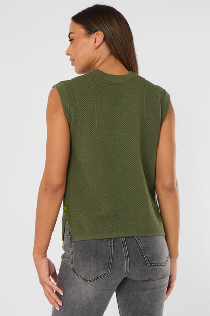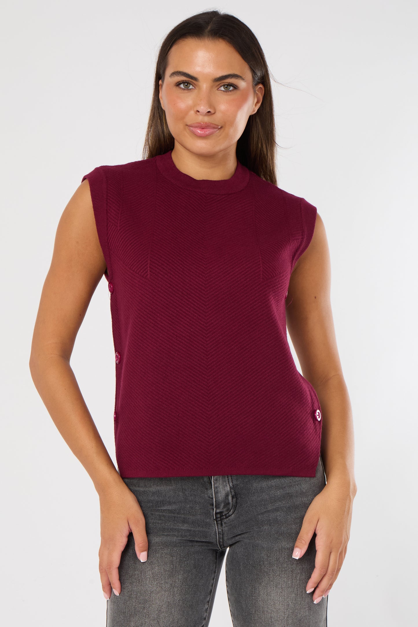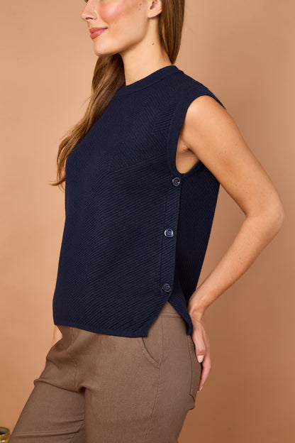 The Herringbone Ribbed Side Button Gilet brings together timeless texture and thoughtful detail for a look that’s both elevated and easy to wear. Featuring a classic herringbone pattern, soft ribbed sides, and side button detailing, this gilet offers a flattering fit with a modern twist.
