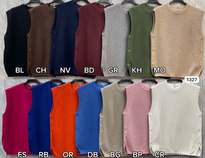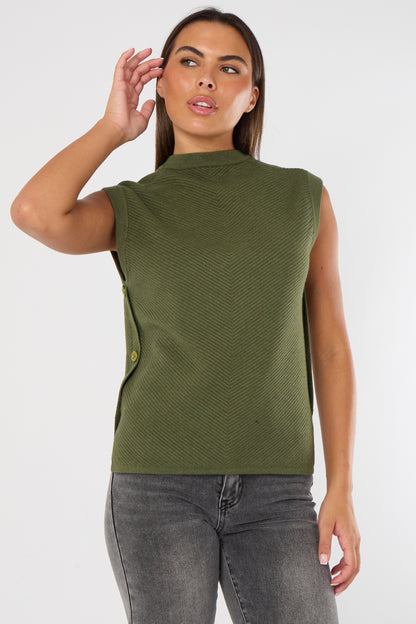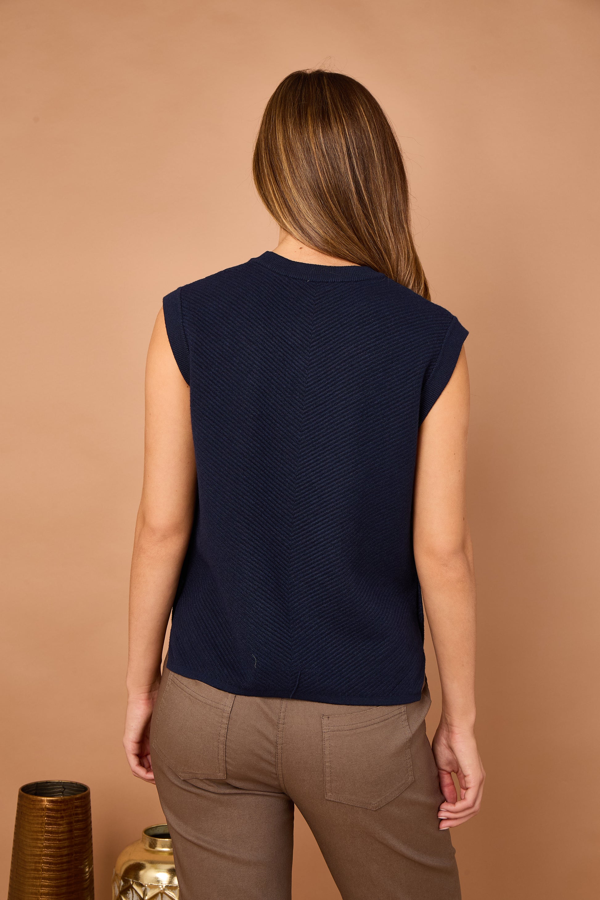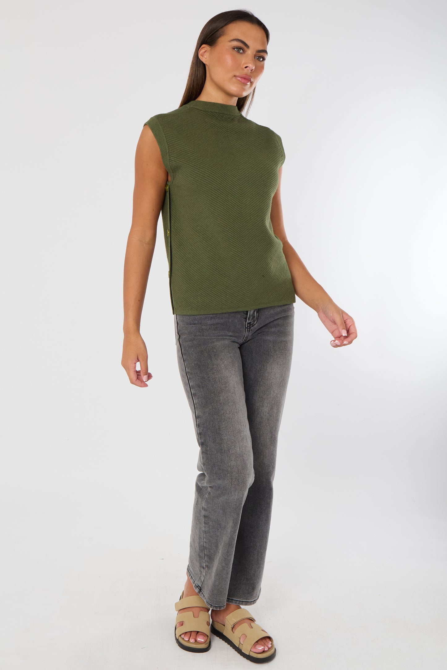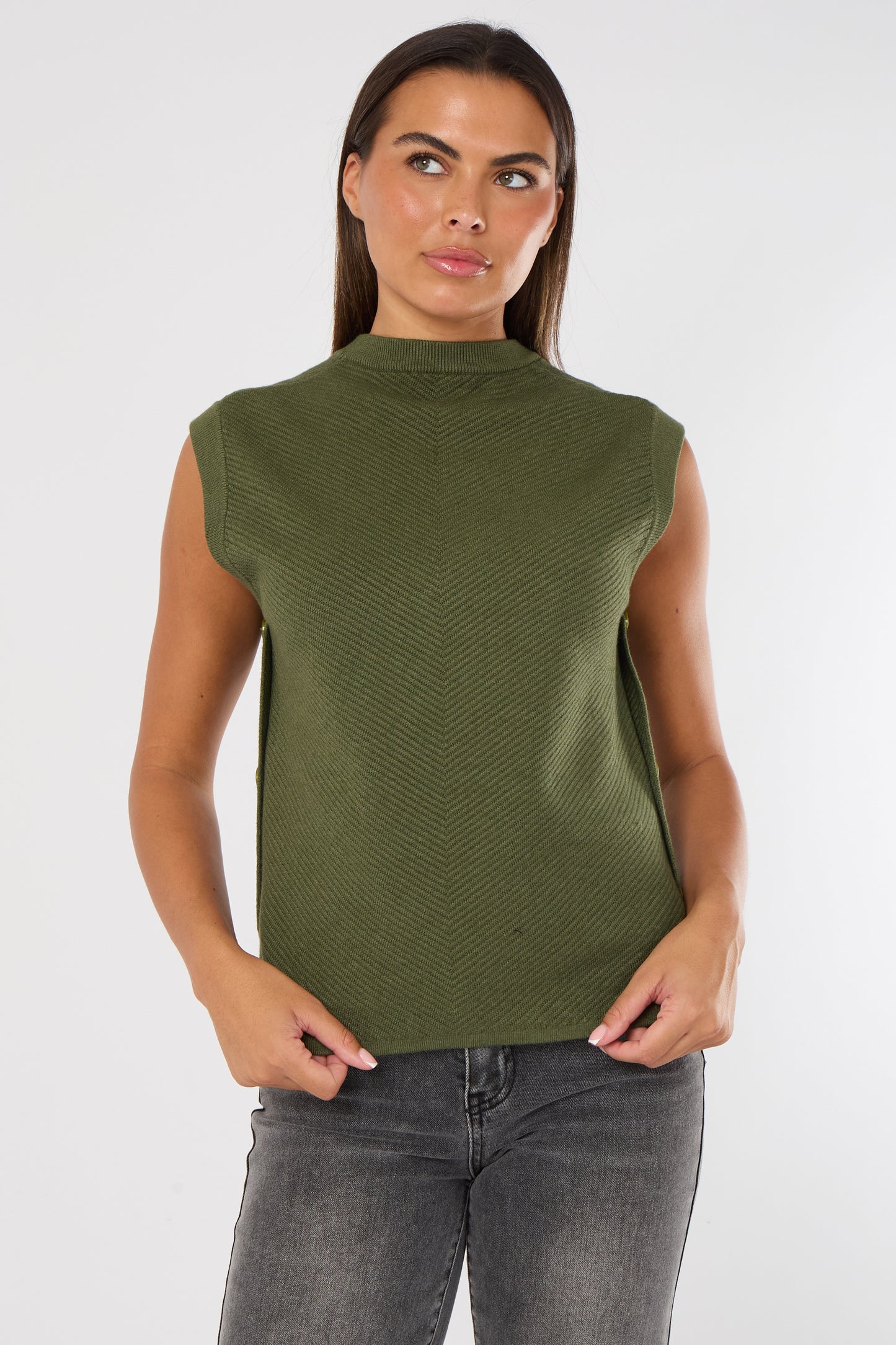 The Herringbone Ribbed Side Button Gilet brings together timeless texture and thoughtful detail for a look that’s both elevated and easy to wear. Featuring a classic herringbone pattern, soft ribbed sides, and side button detailing, this gilet offers a flattering fit with a modern twist.