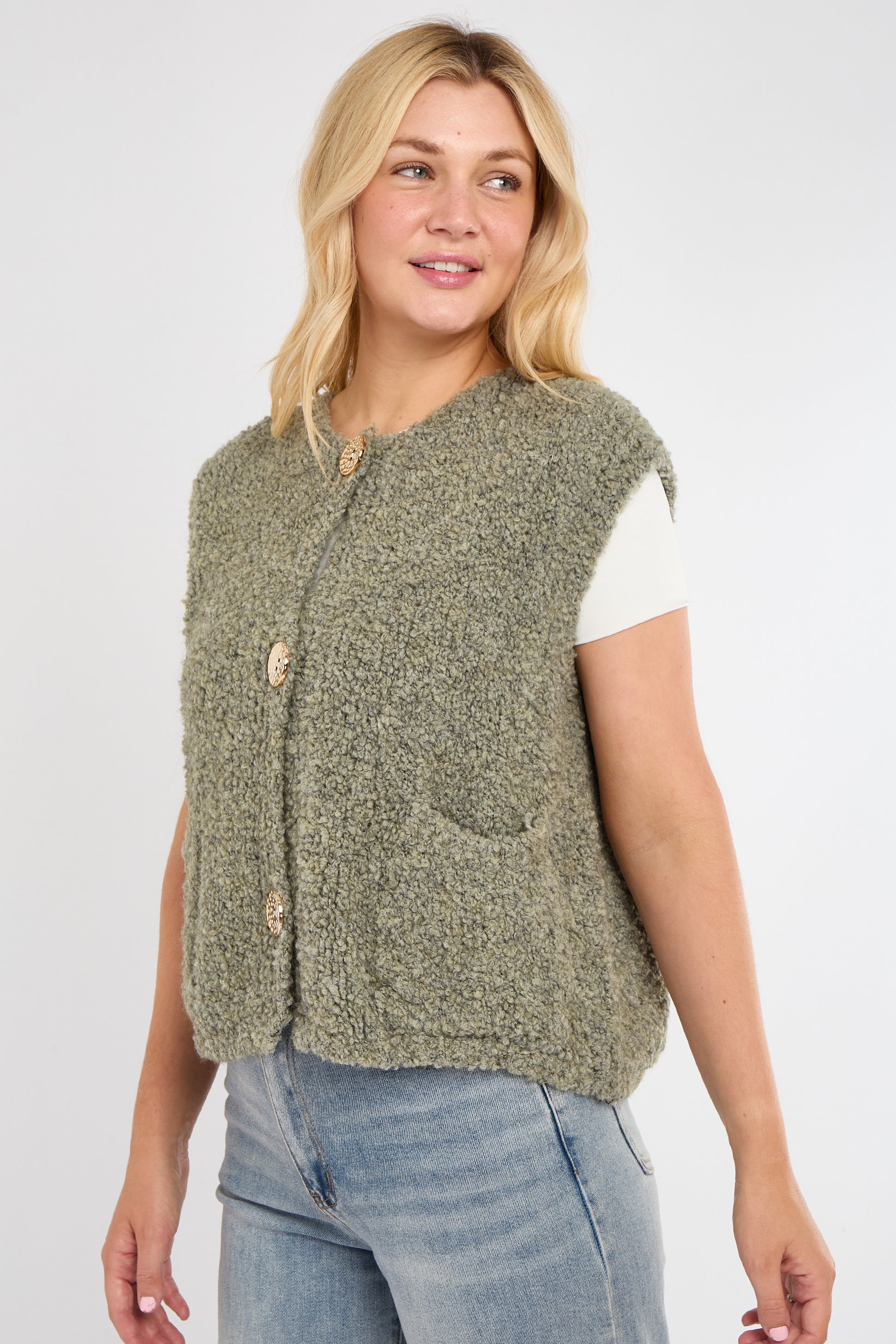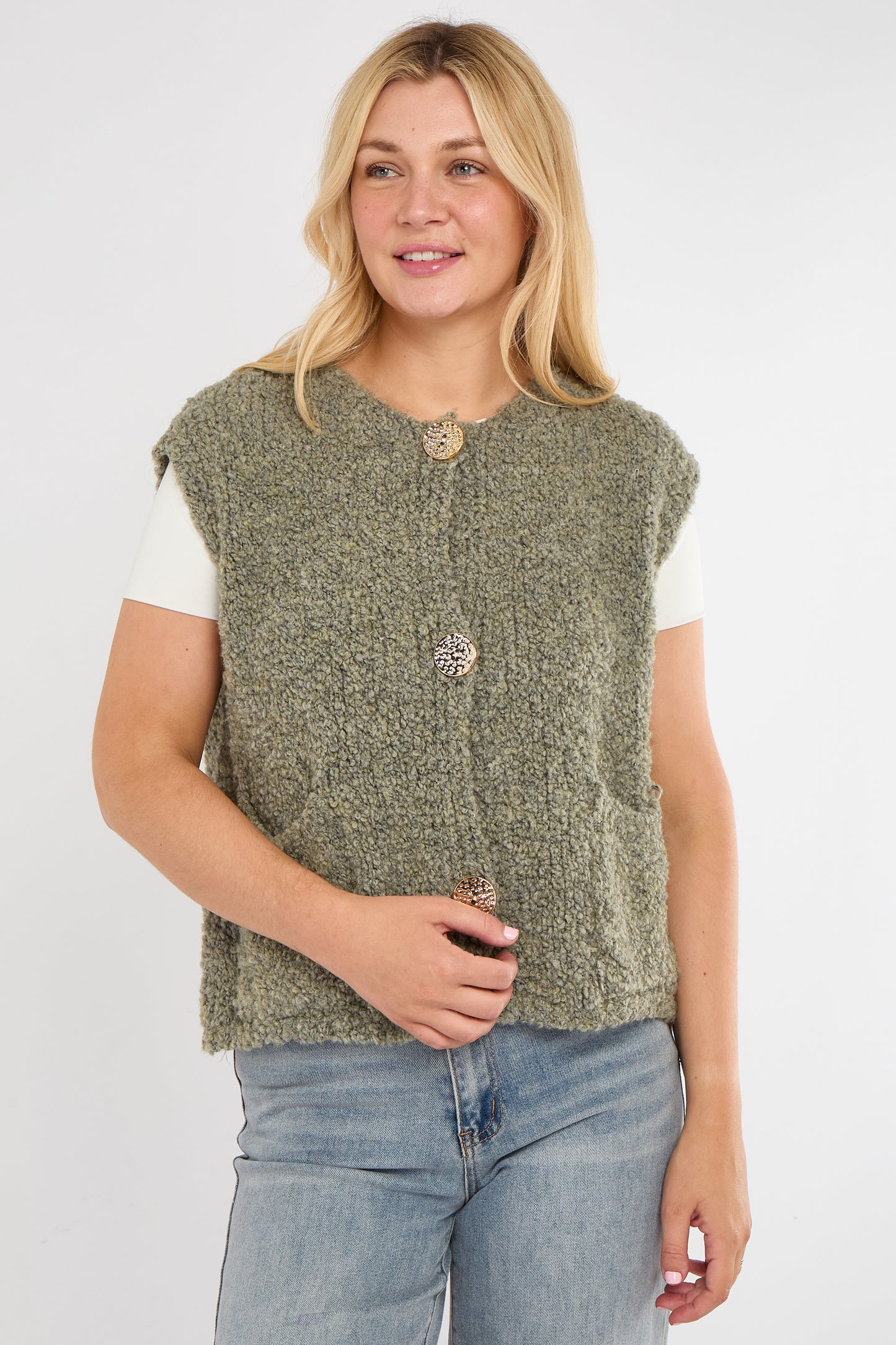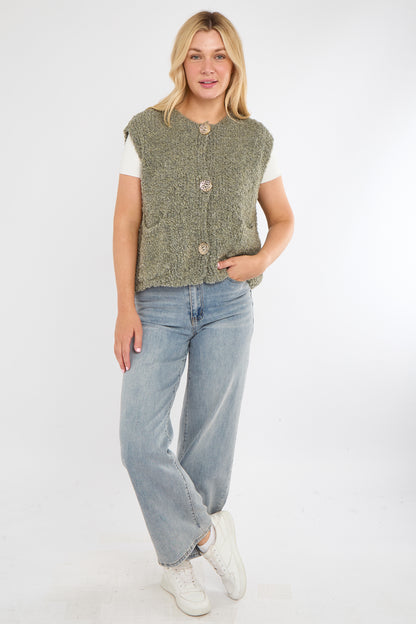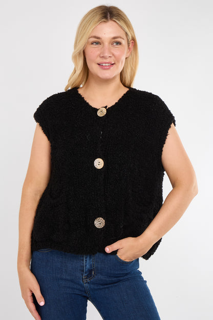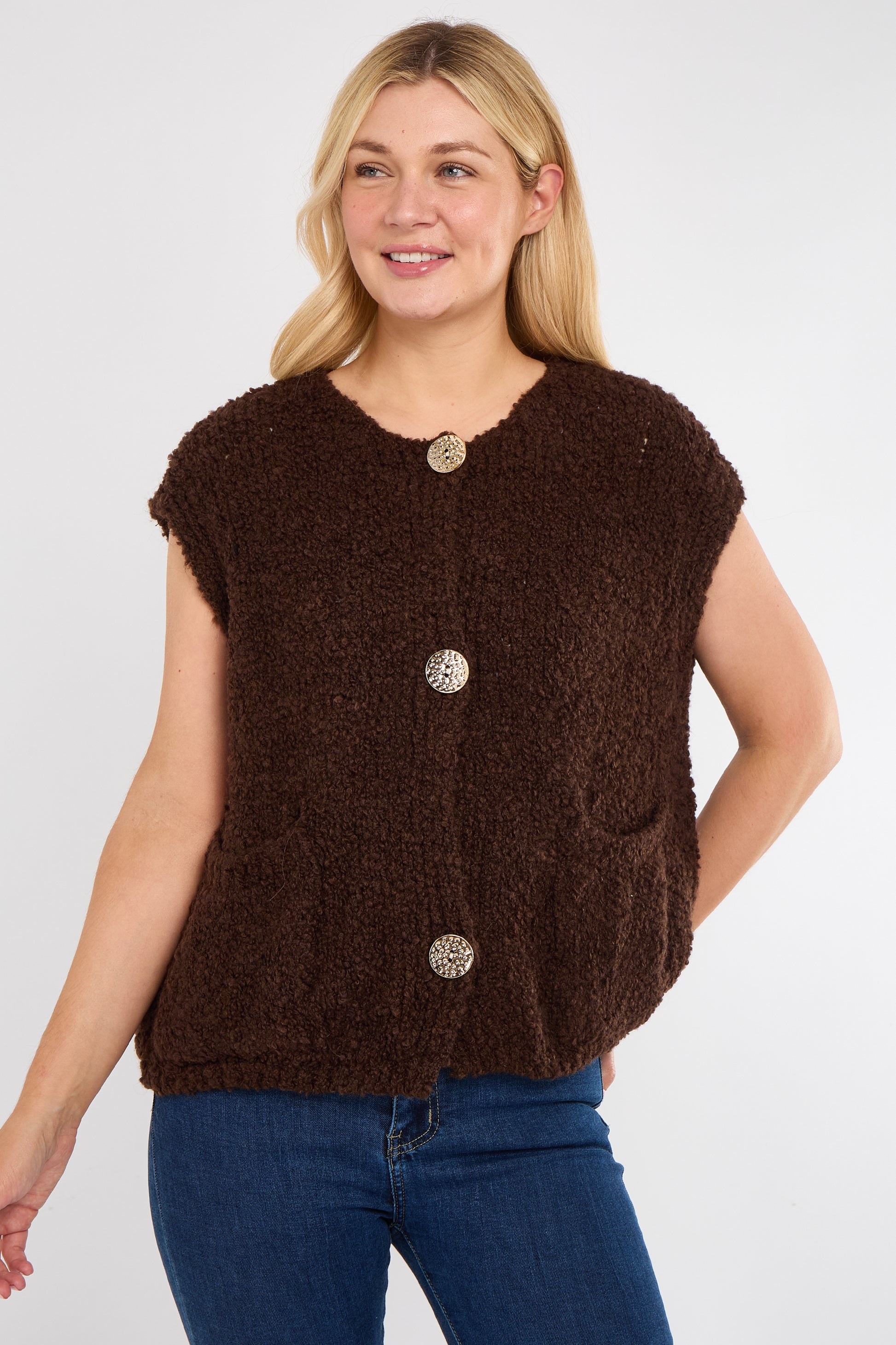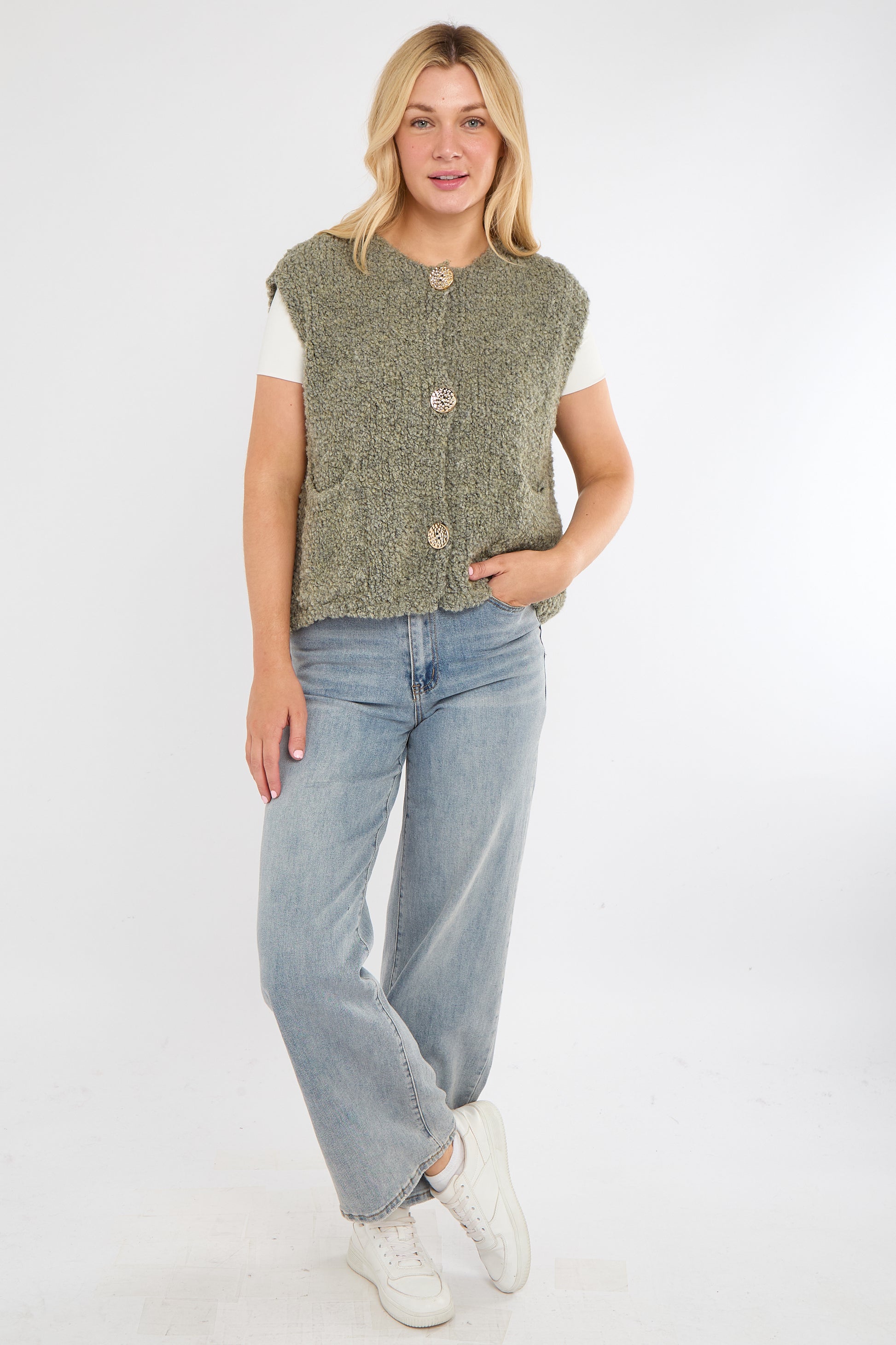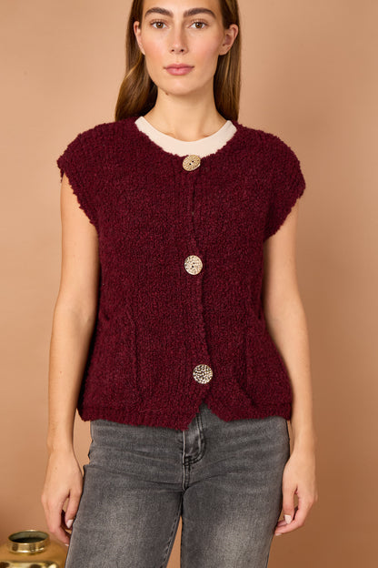 Elevate your layering with the luxurious warmth and structure of our Alpaca Blend Gold Button Gilet. Crafted from a premium alpaca-wool blend, this tailored sleeveless piece delivers both comfort and polish, making it an essential addition to your transitional wardrobe.