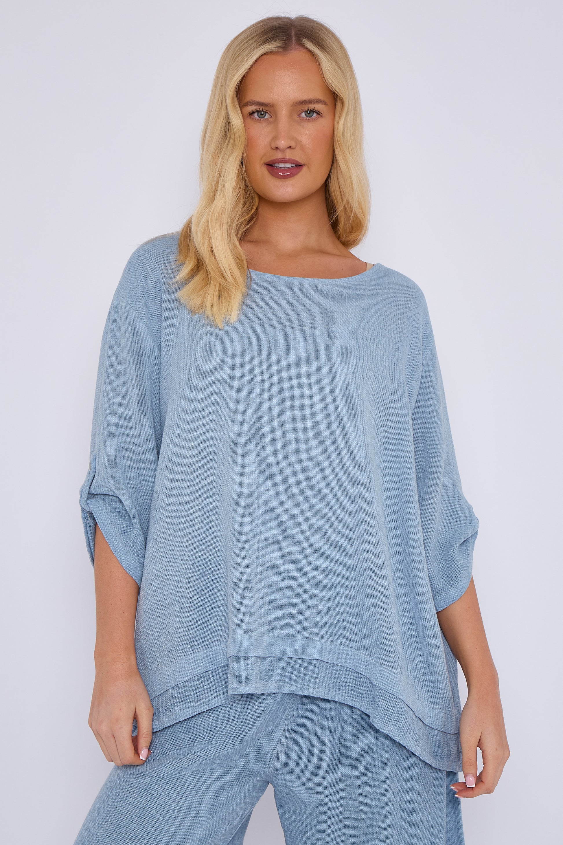 Bring effortless elegance to your wardrobe with the Washed Linen Button Sleeve Layered Top. Crafted from soft, breathable linen with a gently washed finish, this top features a unique layered design that adds depth and movement to your look. The button detailing down the front enhances the classic, timeless appeal, while the relaxed fit ensures all-day comfort and ease.