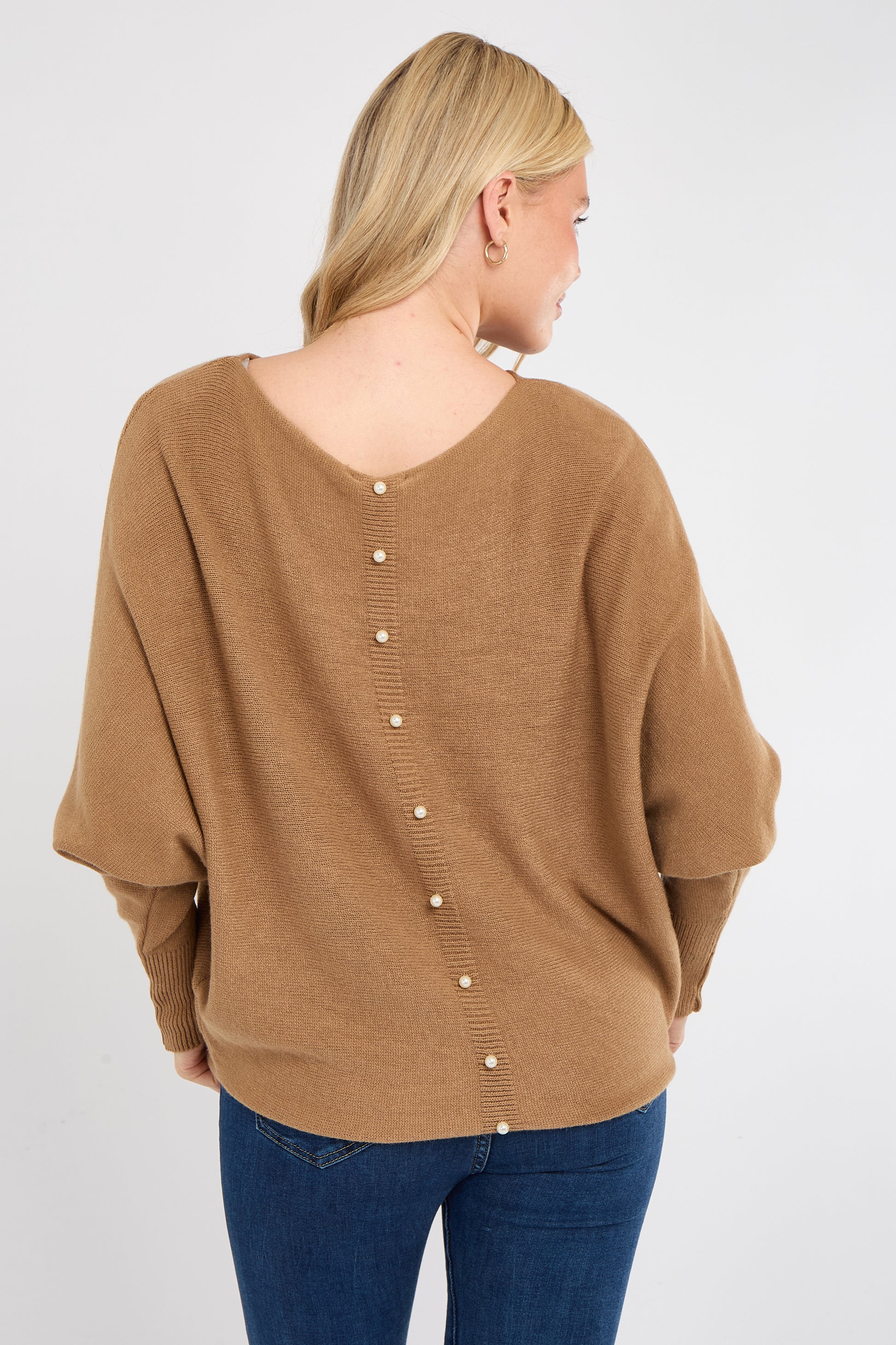 Made from a soft, cozy knit, this jumper is perfect for dressing up or down. Pair it with tailored trousers for a polished office look, or wear it with jeans for elevated weekend style. The pearl detail makes it ideal for special occasions while remaining comfortable for everyday wear.