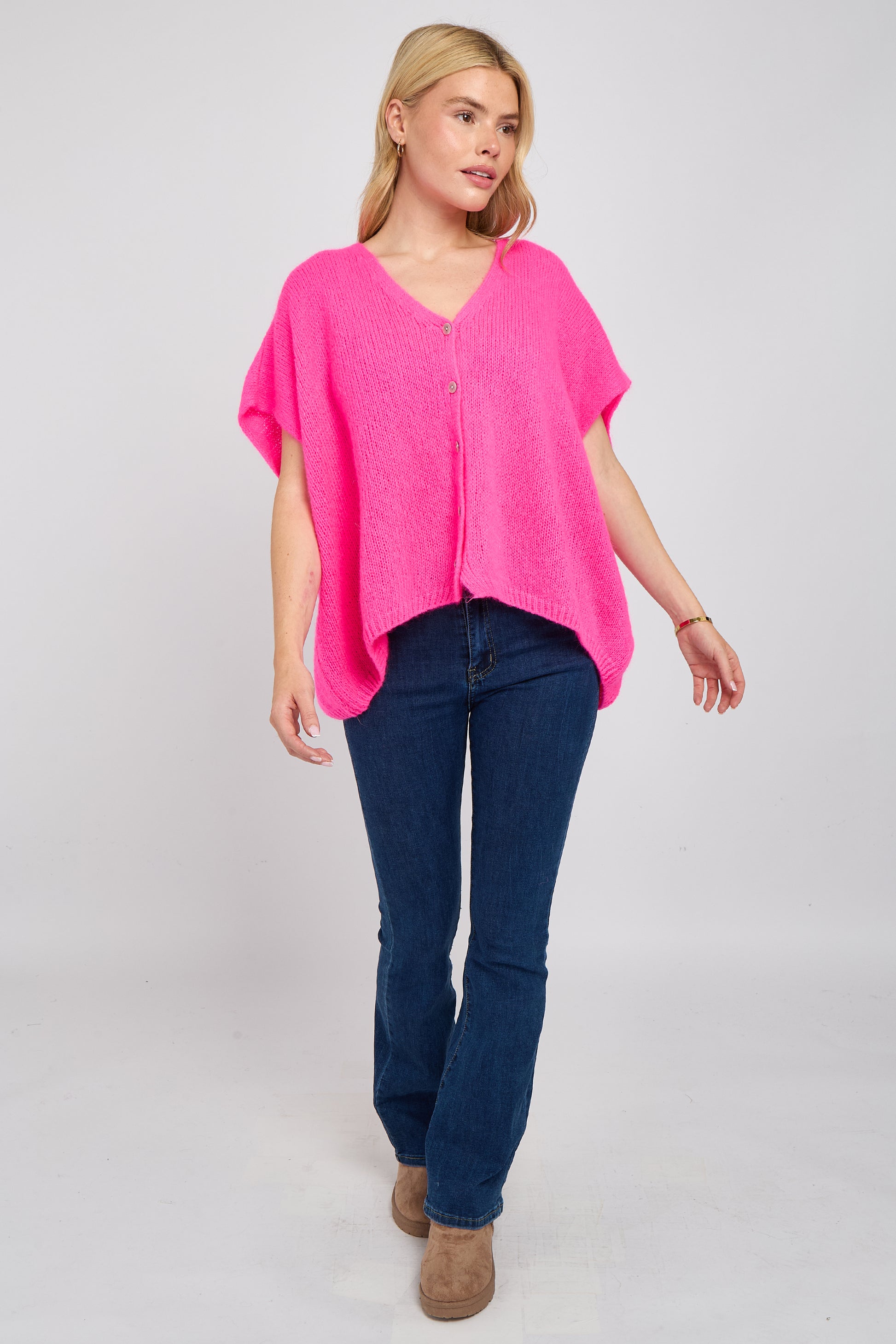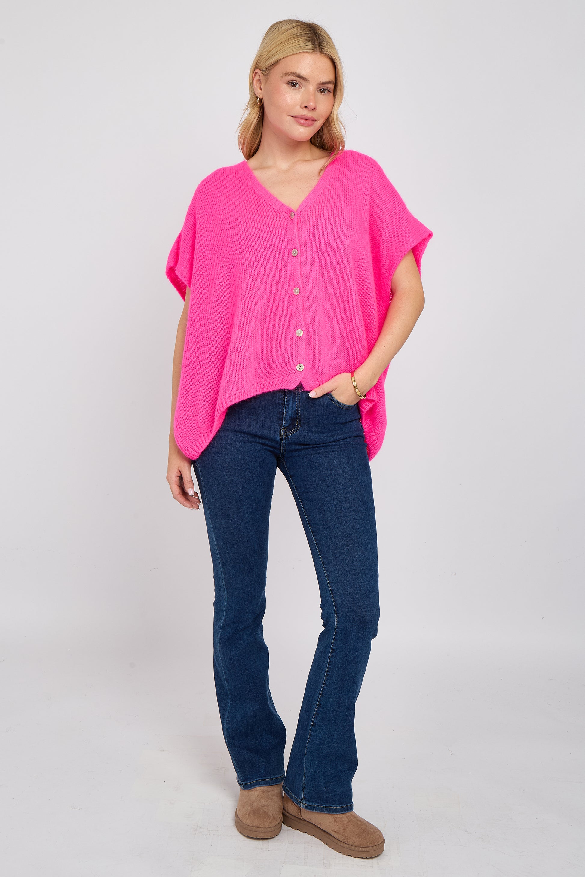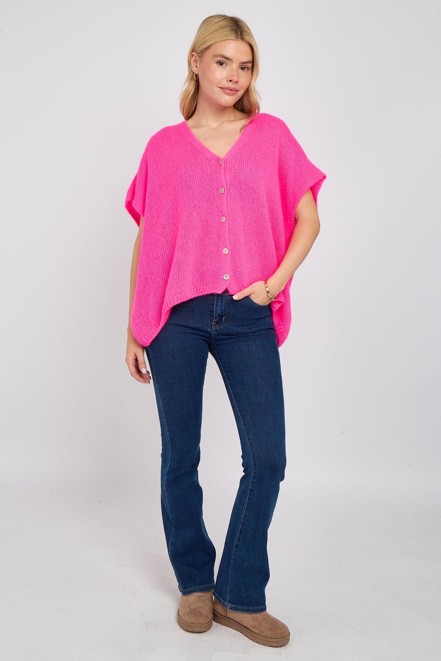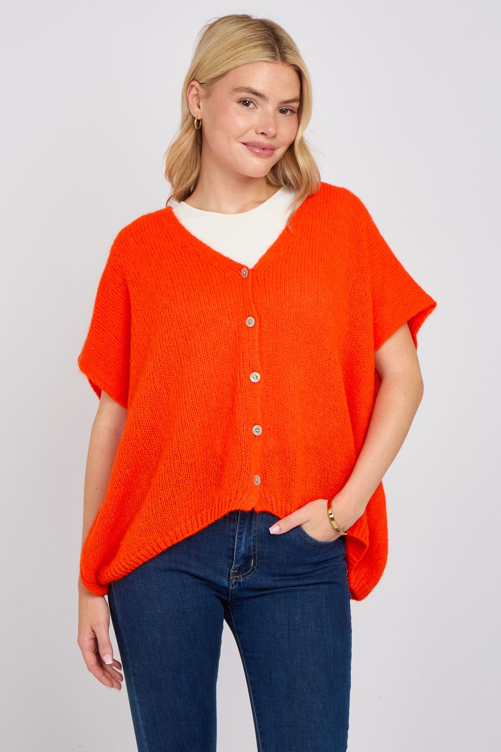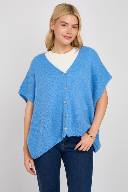 Soft, airy, and endlessly versatile — this mohair V-neck sleeveless cardigan is a modern layering essential. Knitted from a premium mohair blend, it offers a lightweight feel with a slightly fluffy texture for a luxe touch. The deep V-neckline and button-down front add a classic edge, while the sleeveless silhouette makes it perfect for transitional dressing. Wear it solo or layer over shirts, tees, or dresses for an effortlessly chic look.