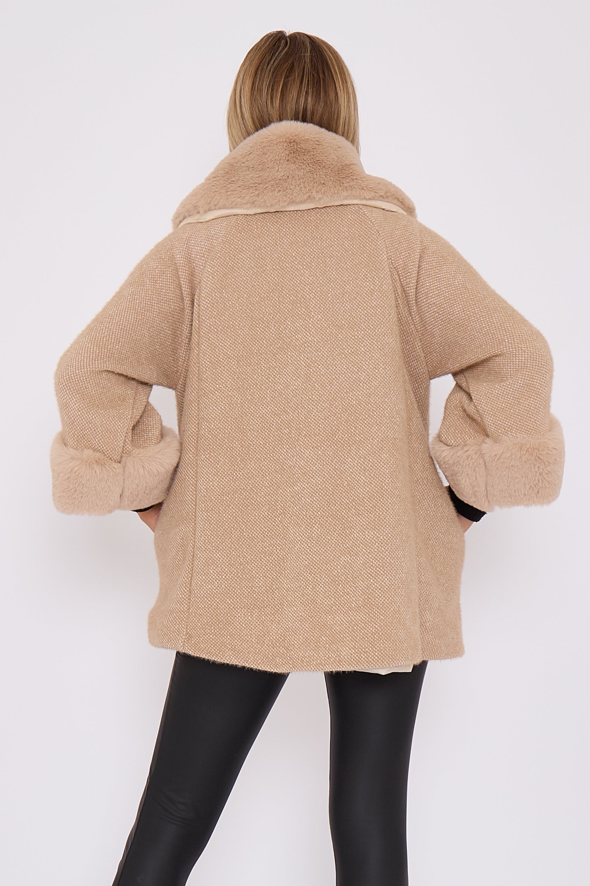 Step into style with our stunning Faux Fur Collar Jacket, a perfect blend of modern flair and timeless elegance. This unique jacket features plush faux fur sleeves that add a luxurious touch to any outfit. The tailored body offers a flattering silhouette, making it a versatile addition to your wardrobe.
