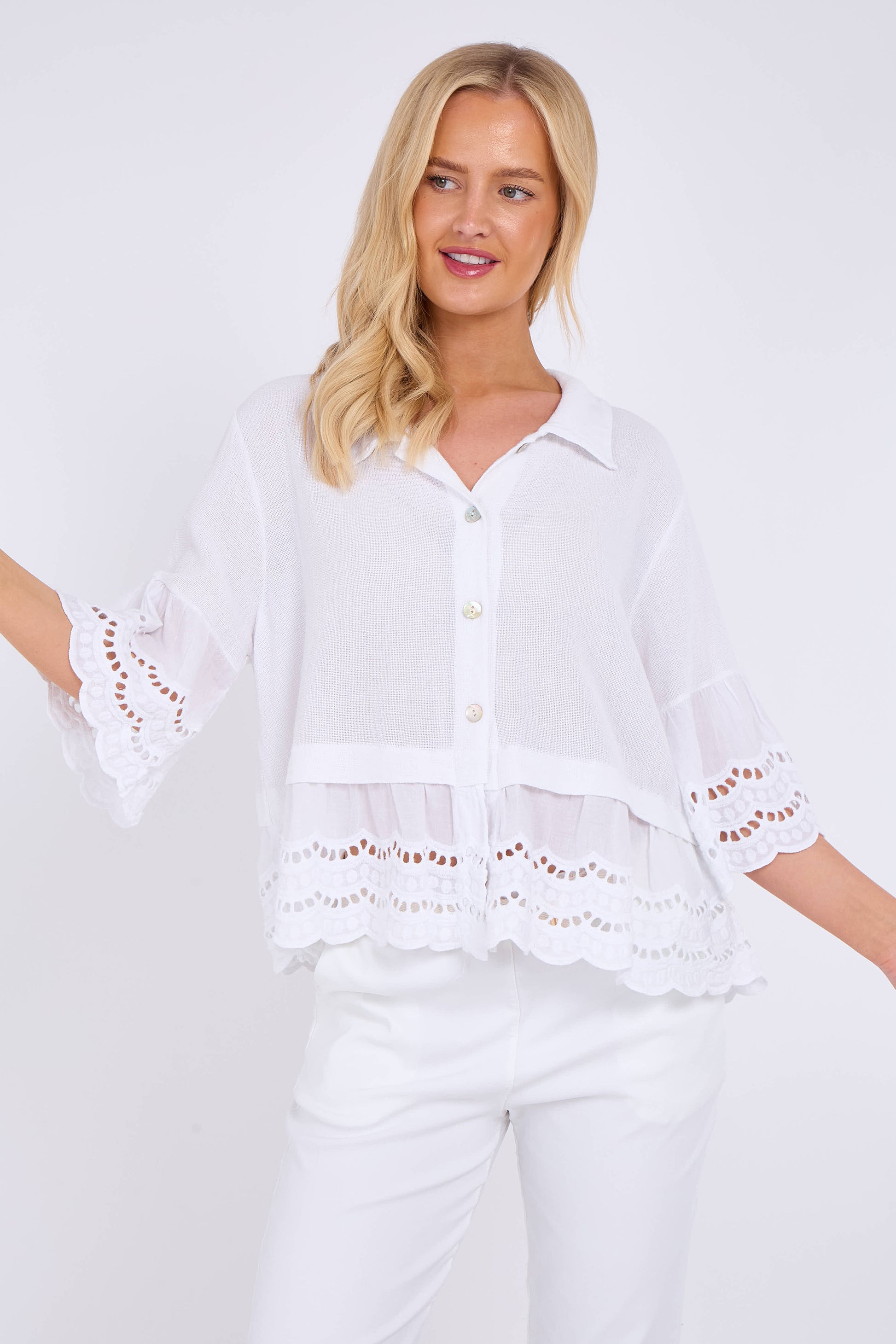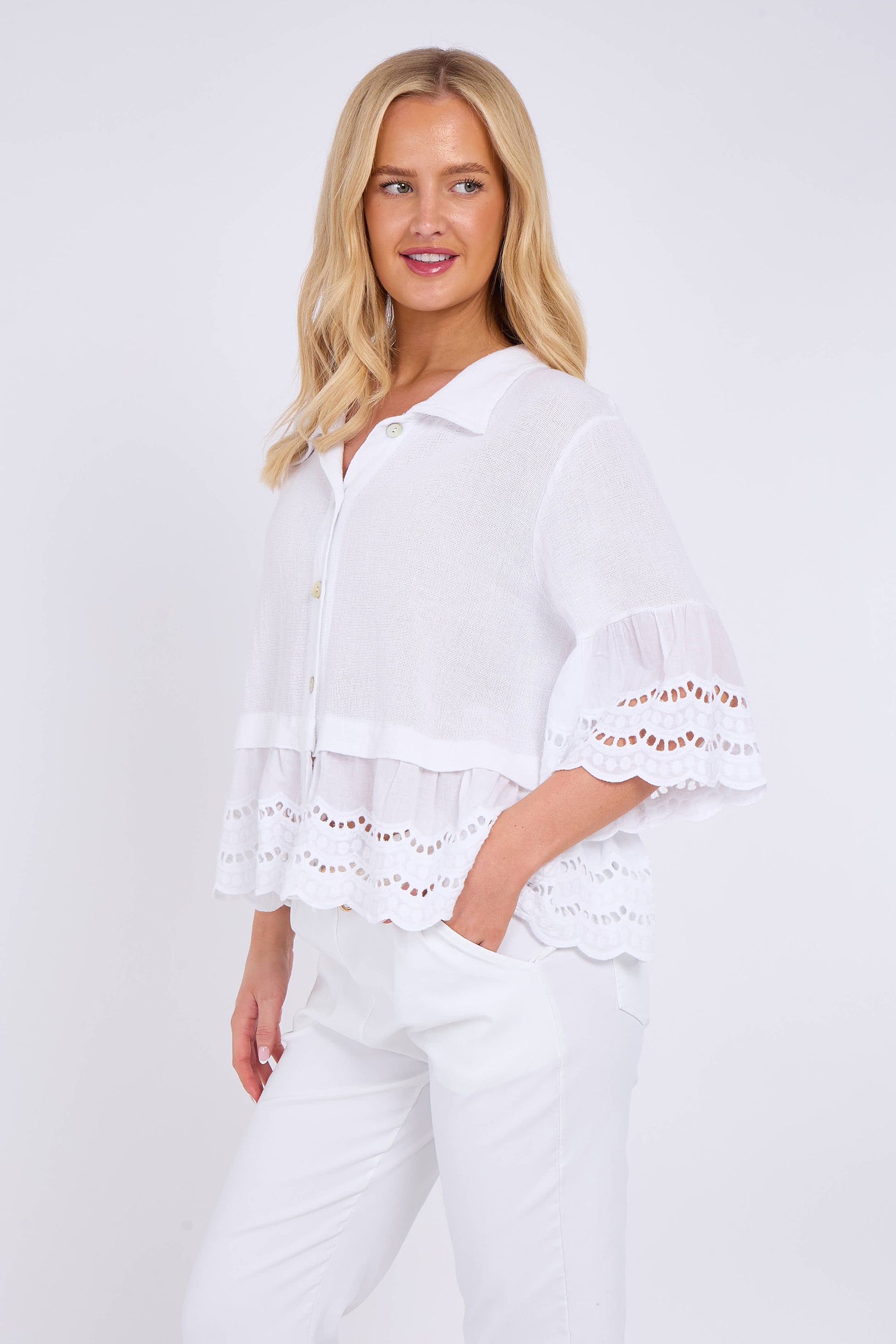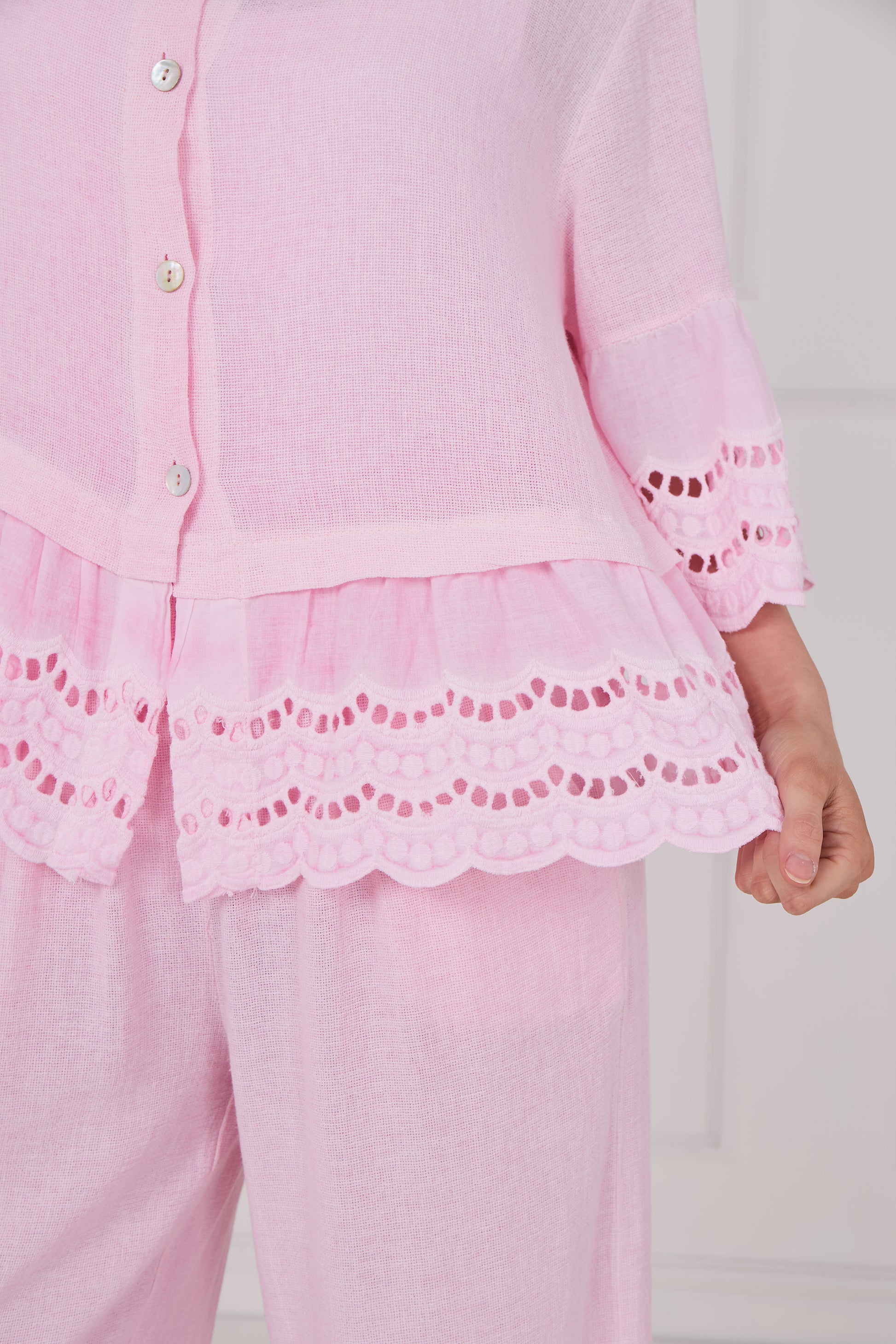 Elevate your wardrobe with the effortless charm of our Washed Linen Anglaise Shirt. Crafted from premium, breathable linen, this shirt features a delicate Anglaise embroidery that adds a touch of elegance to its laid-back design. The garment's washed finish offers a soft, lived-in feel, making it perfect for both casual and semi-formal occasions.