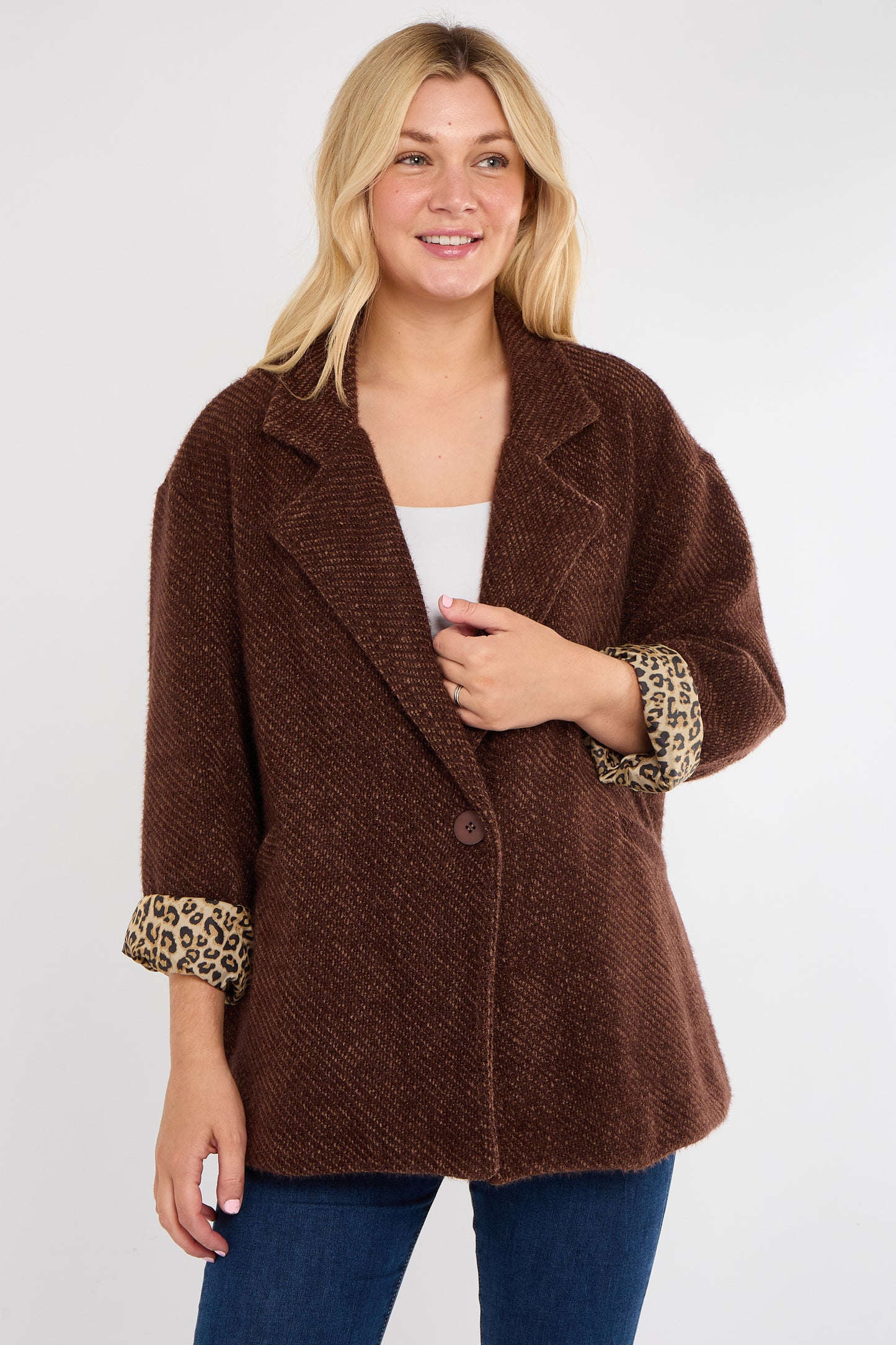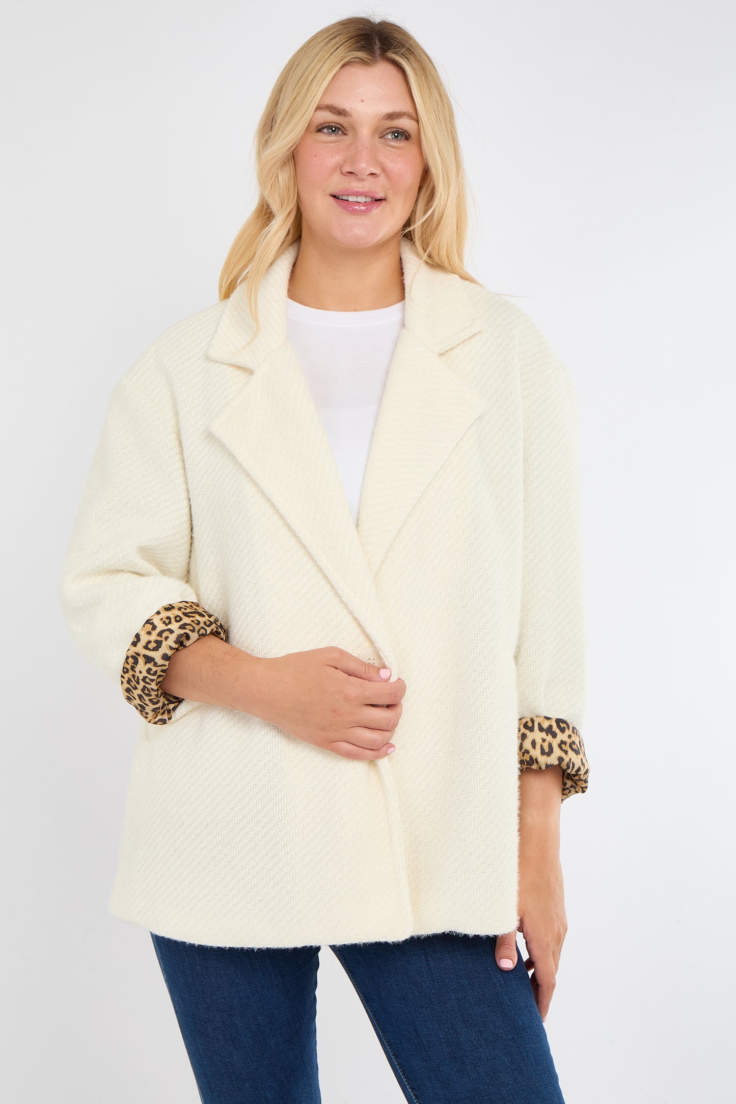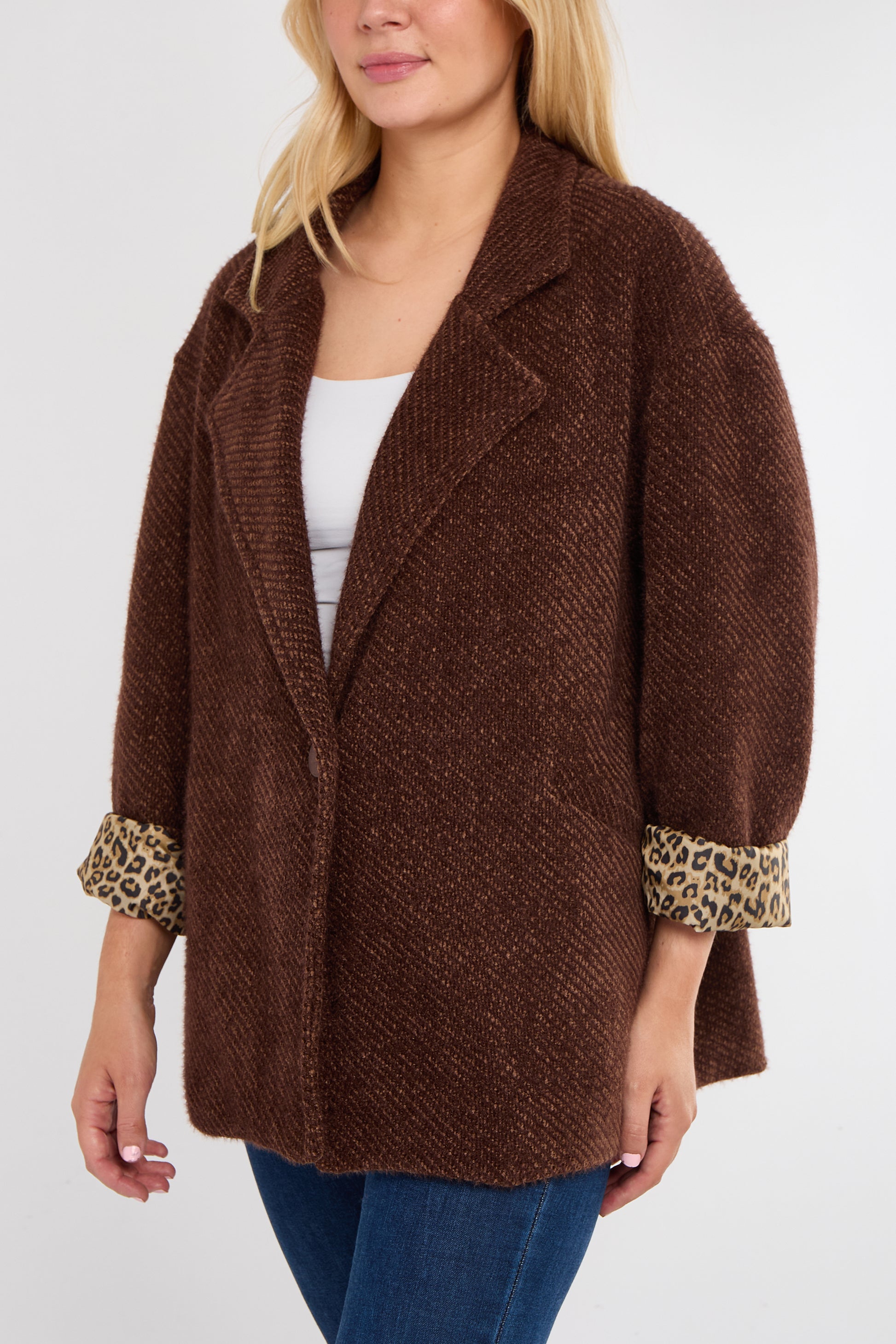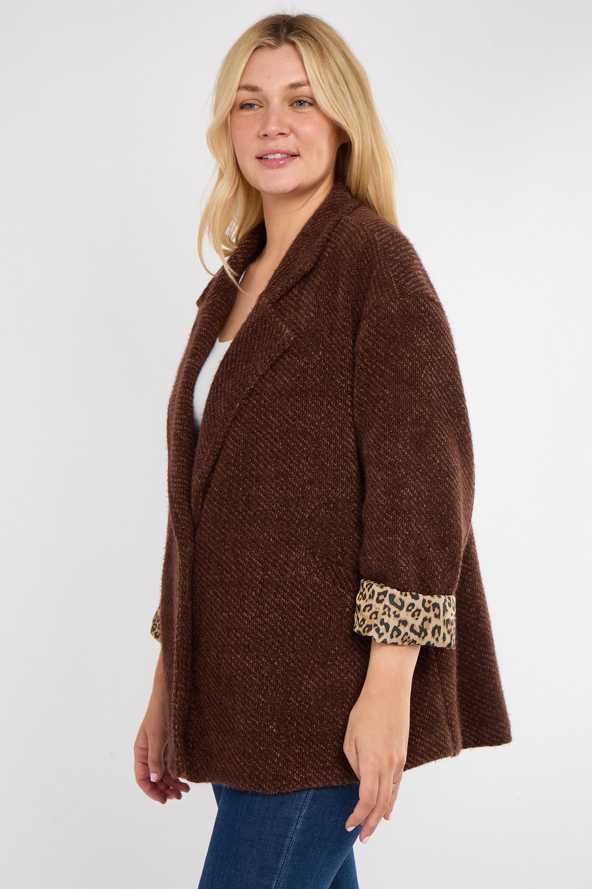 The Leopard Trim Jacket is your new go-to layer for adding instant edge to any outfit. Designed in a timeless silhouette, this jacket features sleek lines, a flattering fit, and standout leopard print accents that bring just the right amount of drama.