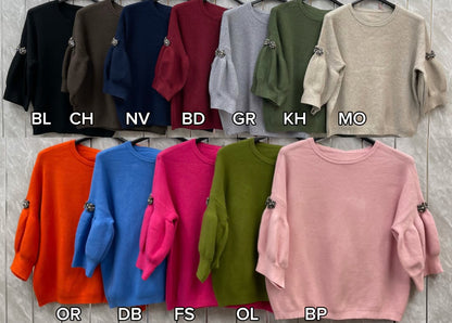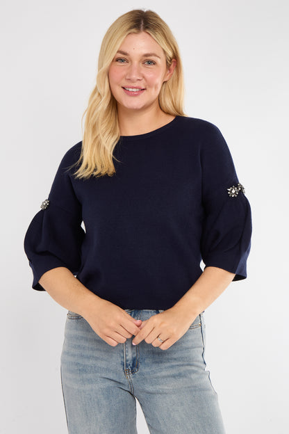 Add a touch of elegance to your knitwear collection with the Diamond Puff Sleeve Jumper. Crafted from soft, breathable fabric, this jumper features delicate puff sleeves detailed with a subtle diamond pattern—bringing a feminine and stylish twist to a classic silhouette.