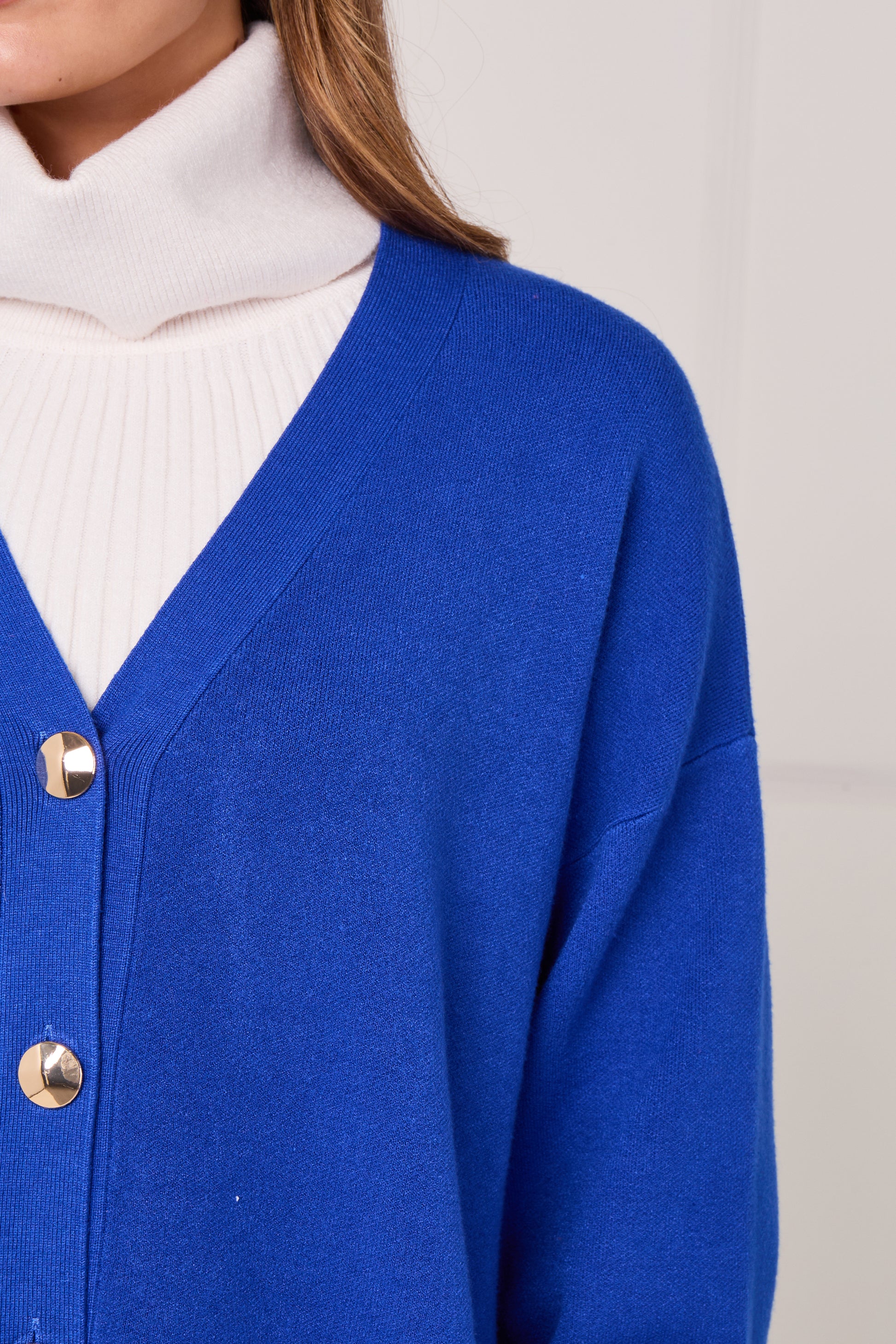 Meet the cardigan that goes with everything. Our Gold Button Cardigan combines timeless design with a hint of polish, thanks to its statement gold buttons. The soft knit and relaxed fit make it the perfect layering piece — whether you’re styling it over a dress, pairing with trousers, or keeping it casual with denim.