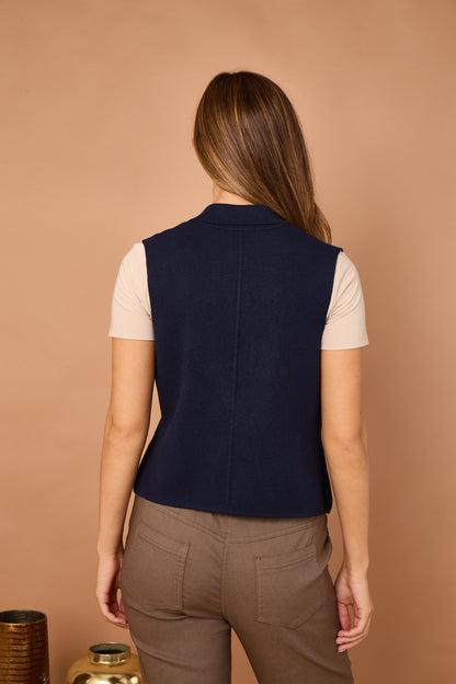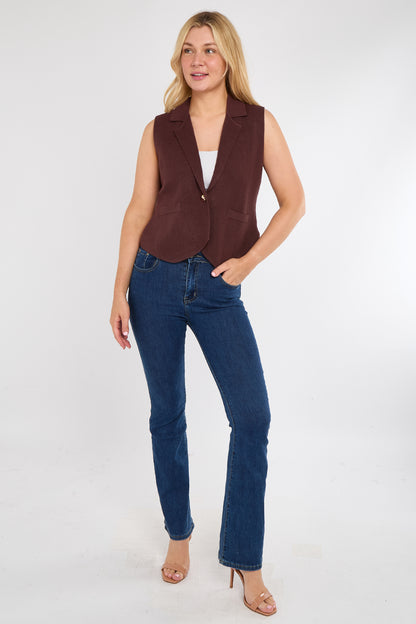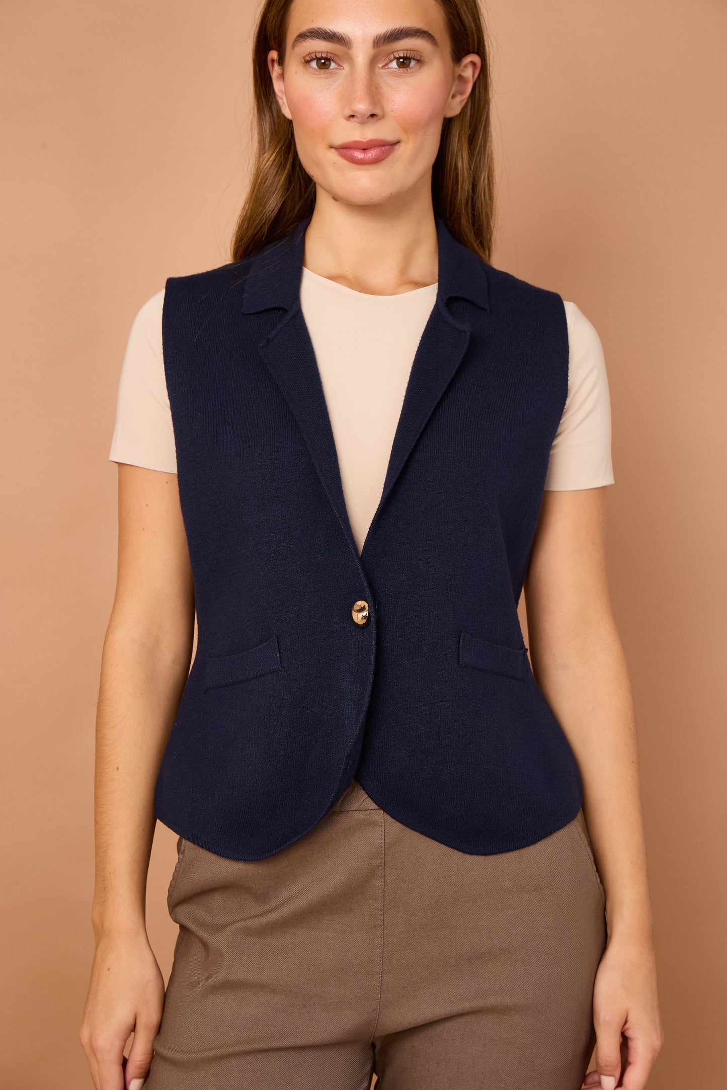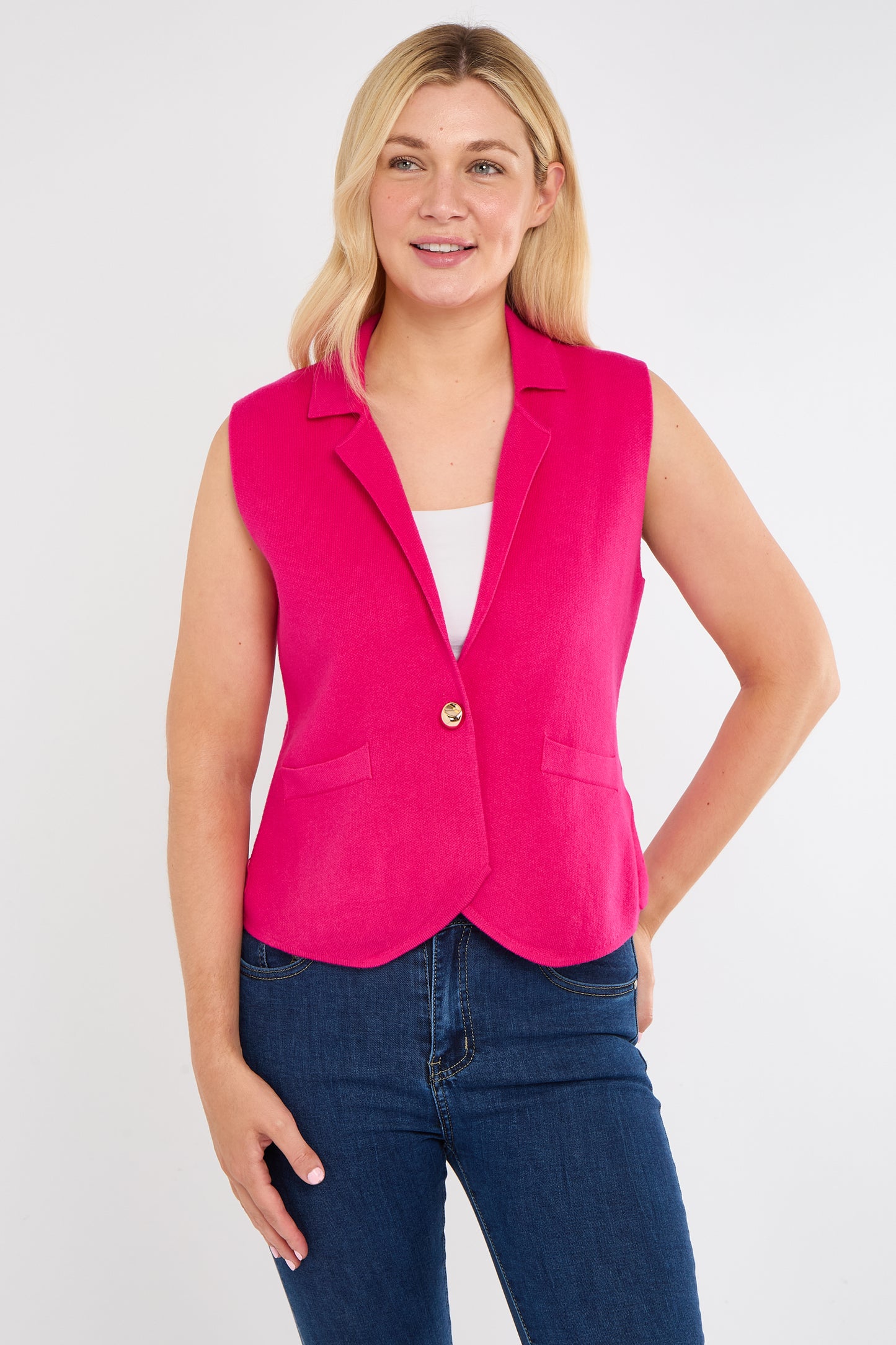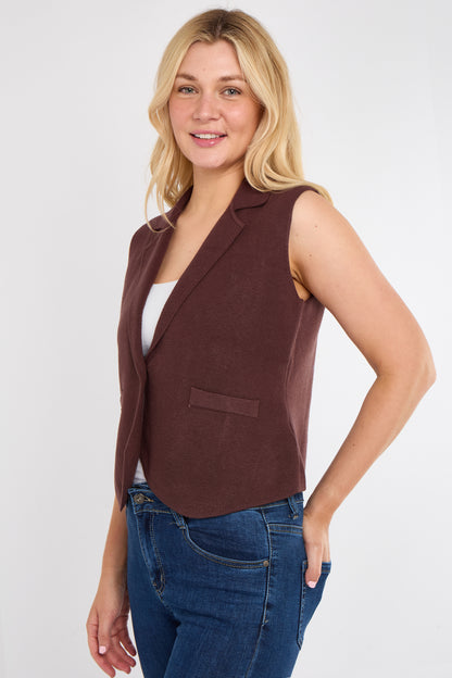 Elevate your layering with the Gold Button Knitted Gilet Blazer — a modern twist on classic tailoring. Crafted from a soft, structured knit, this sleeveless blazer features eye-catching gold buttons that add a touch of luxe sophistication to your outfit.