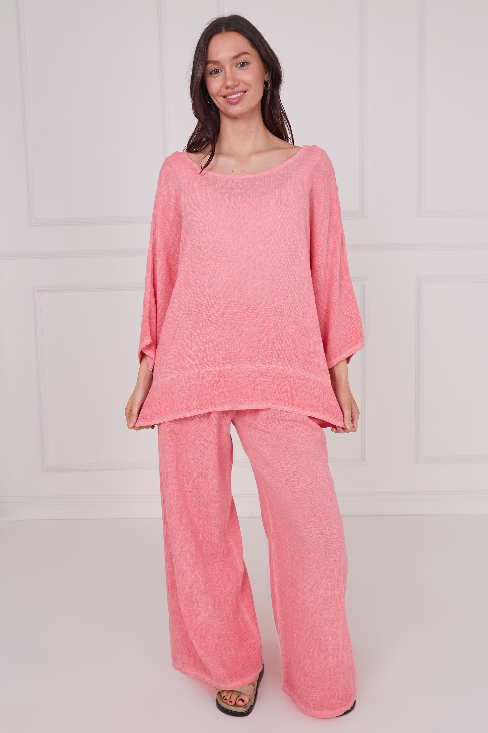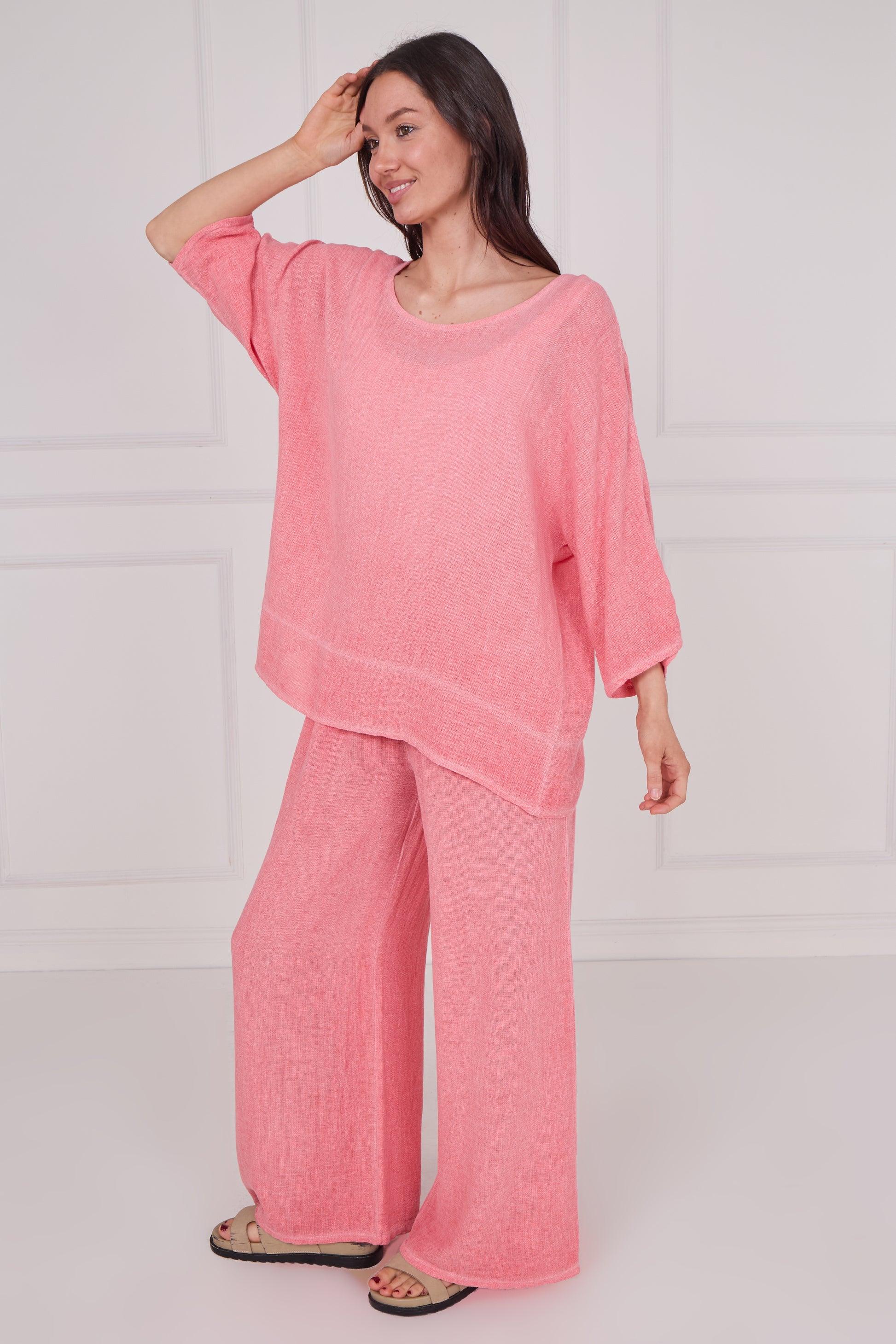 Perfect for pairing with matching linen trousers, skirts, or casual separates, this top blends comfort with understated elegance.