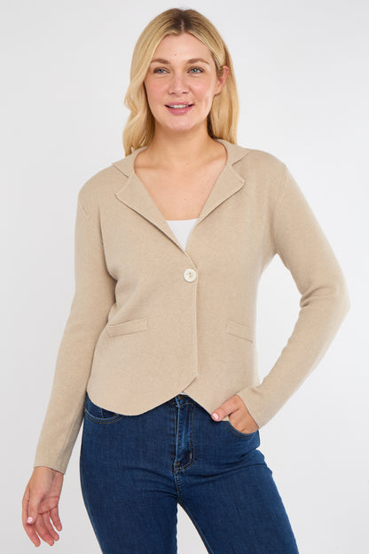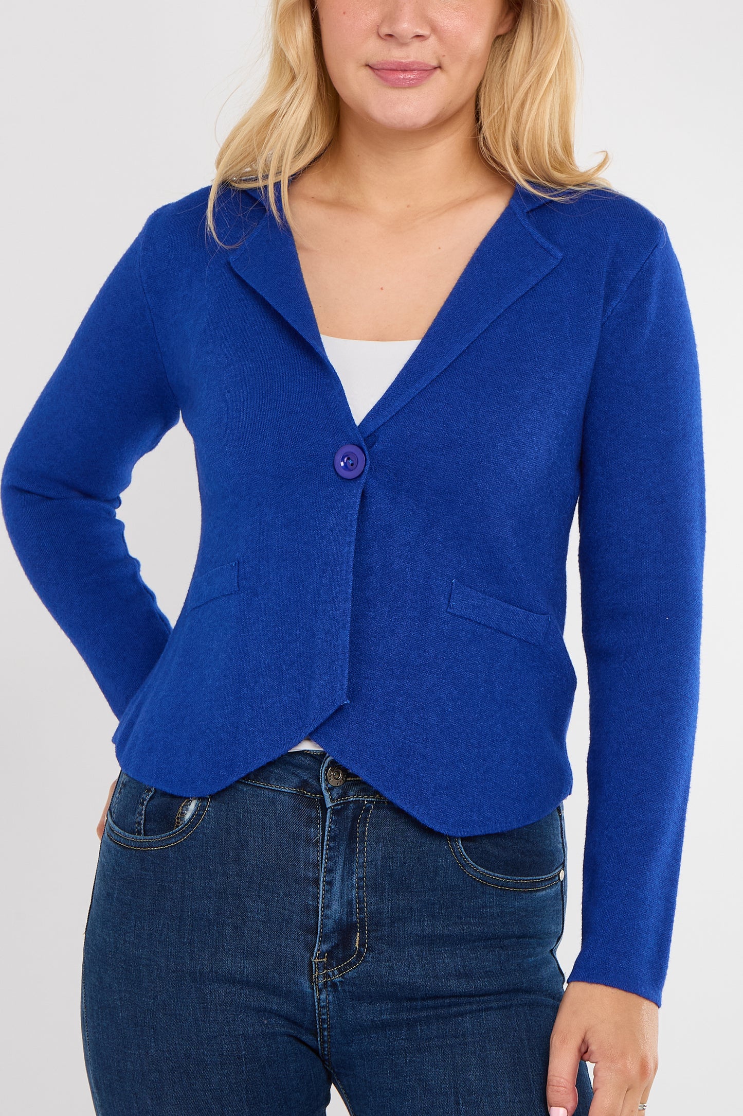 Chic meets comfort in the One Button Knitted Crop Blazer — a modern, tailored layer with a soft knit feel. Designed with a flattering cropped silhouette, this piece features a single-button closure for a clean, minimalist look that effortlessly transitions from day to night.