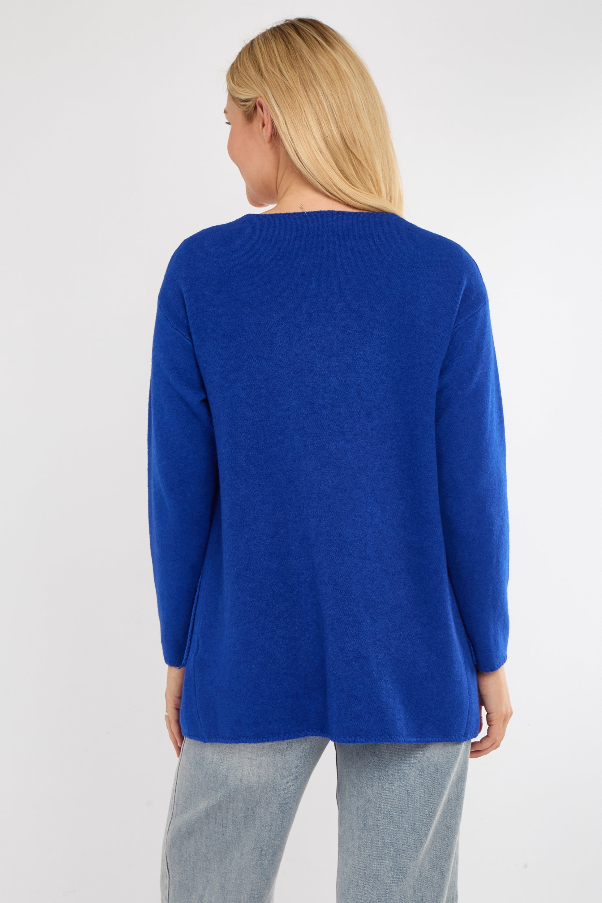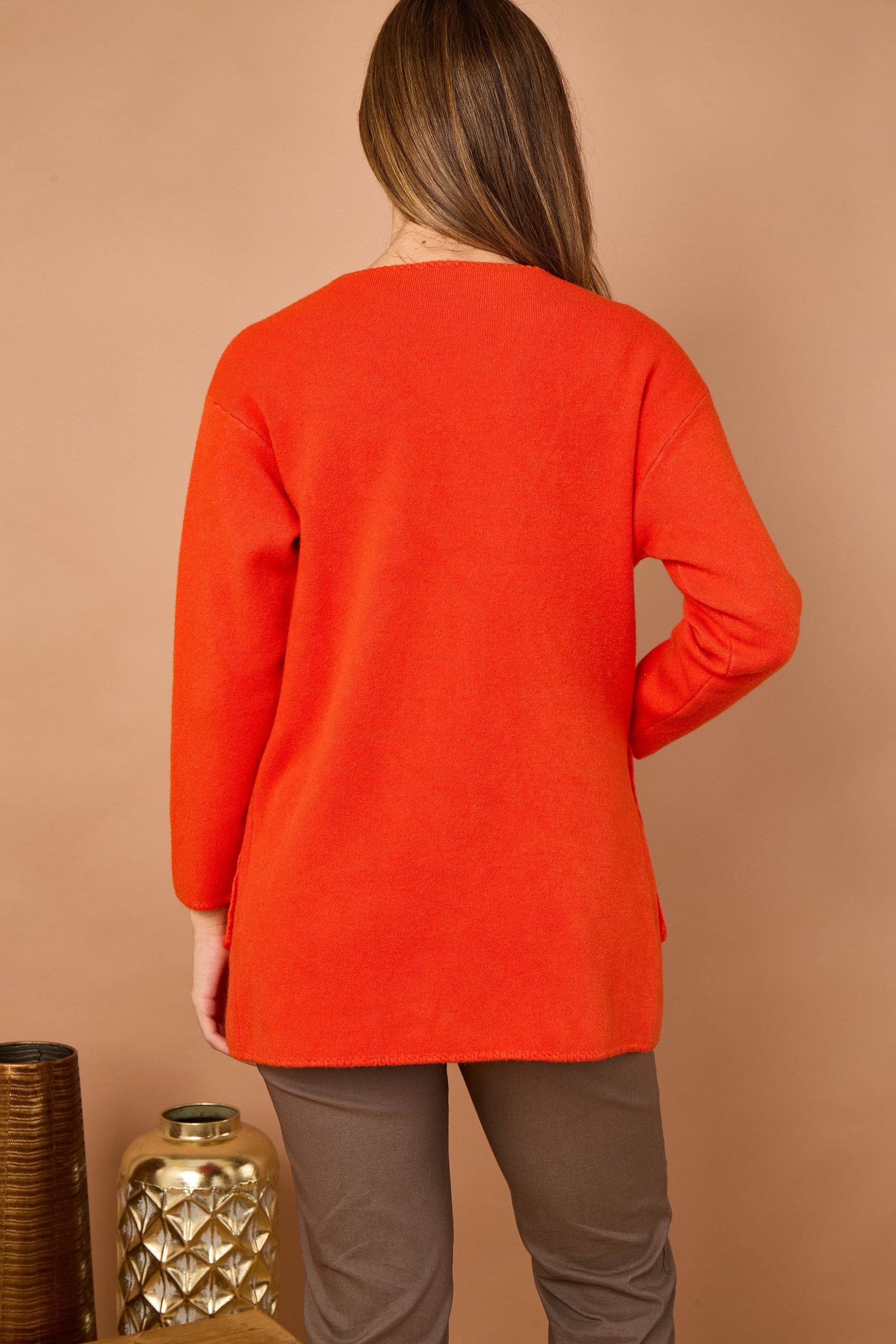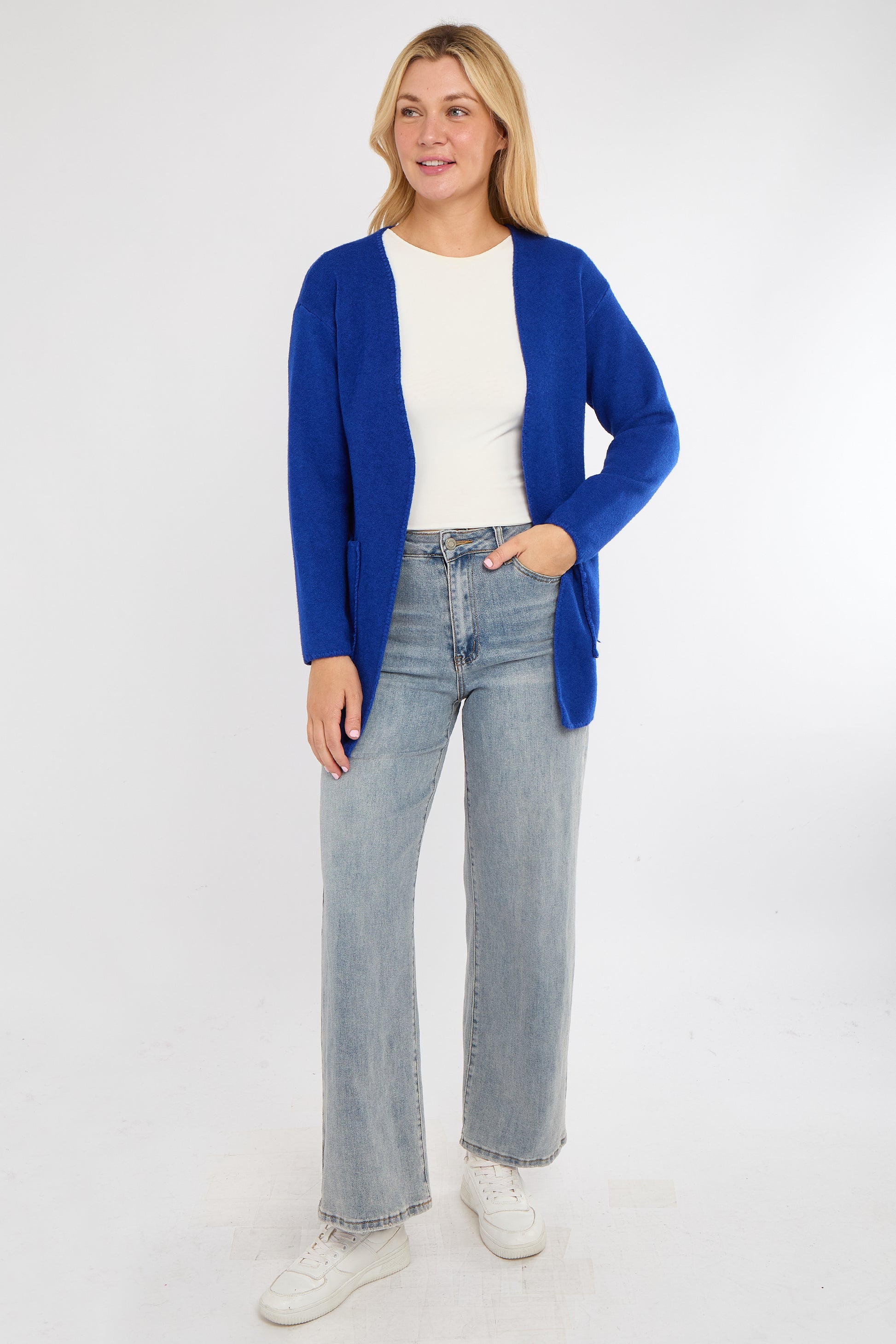 Cozy meets classic in the Blanket Stitch Two Pocket Cardigan. Crafted from soft knit fabric, this cardigan features charming blanket stitch detailing along the edges and two practical front pockets for everyday convenience.