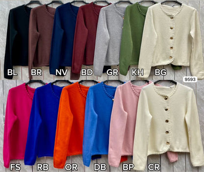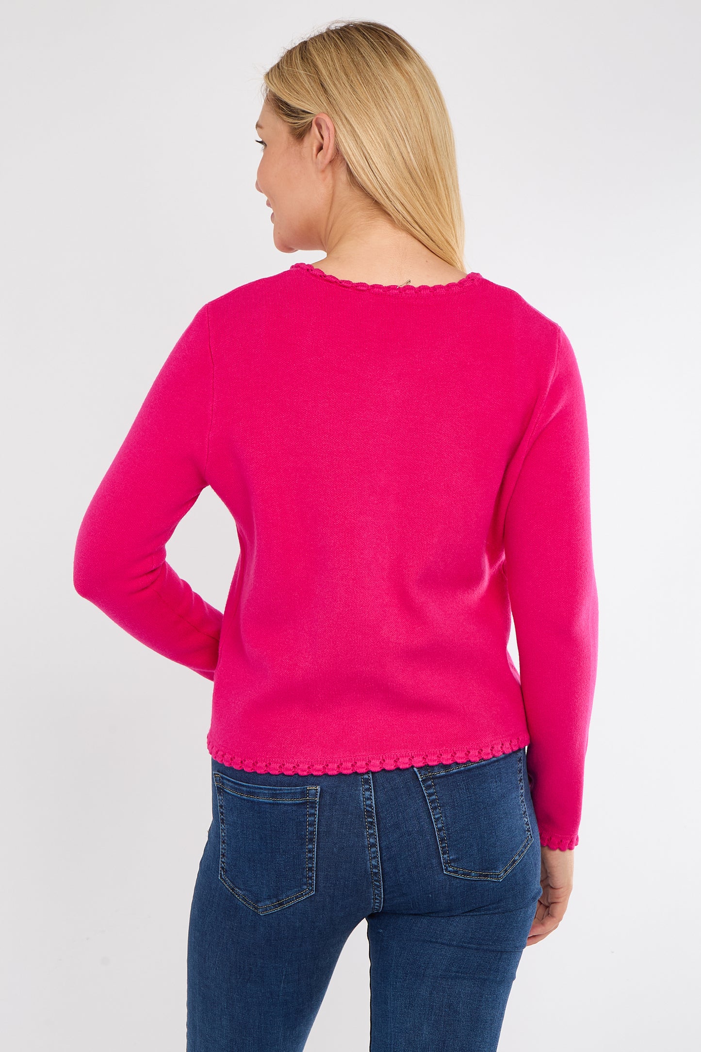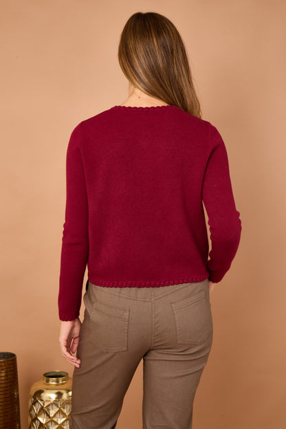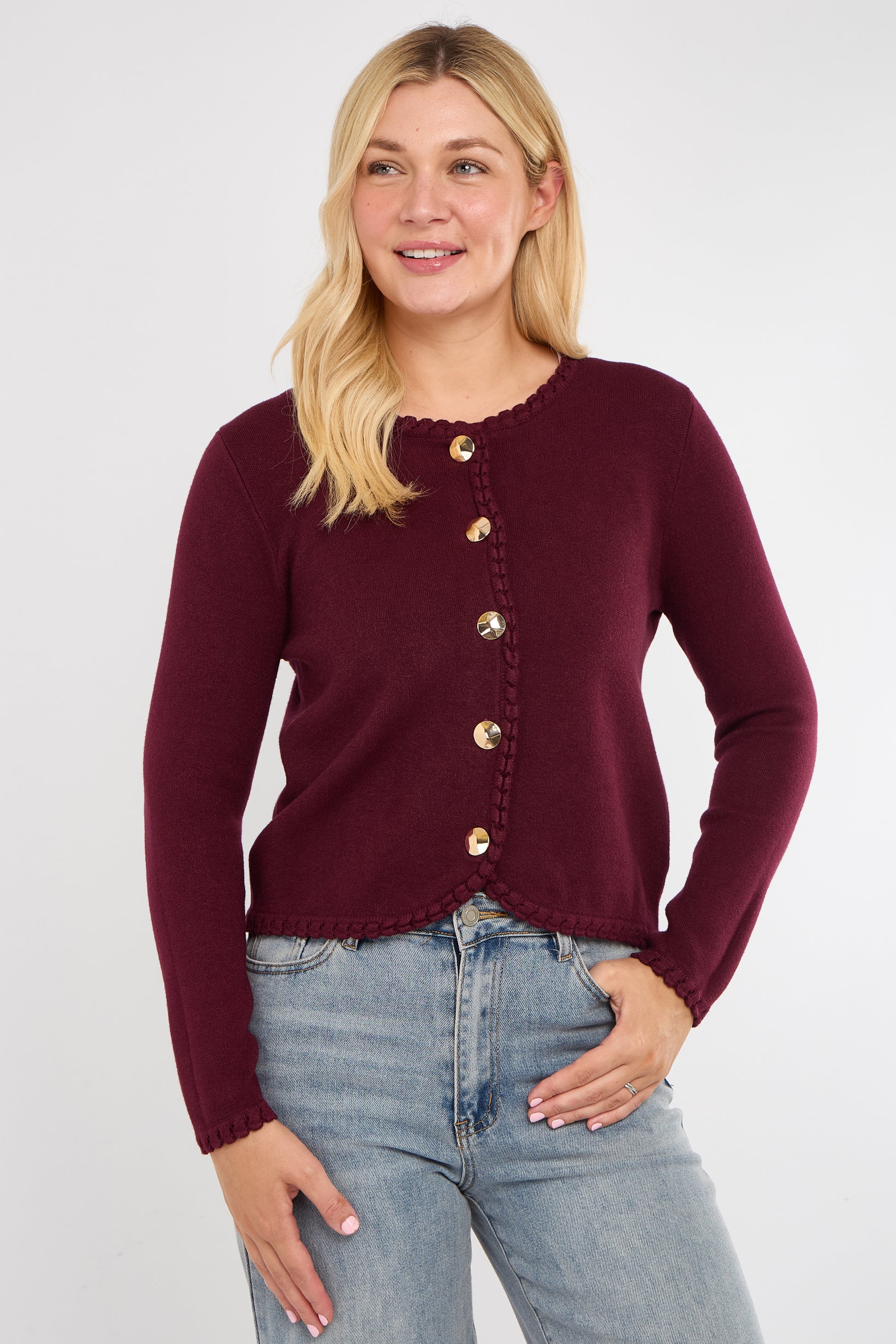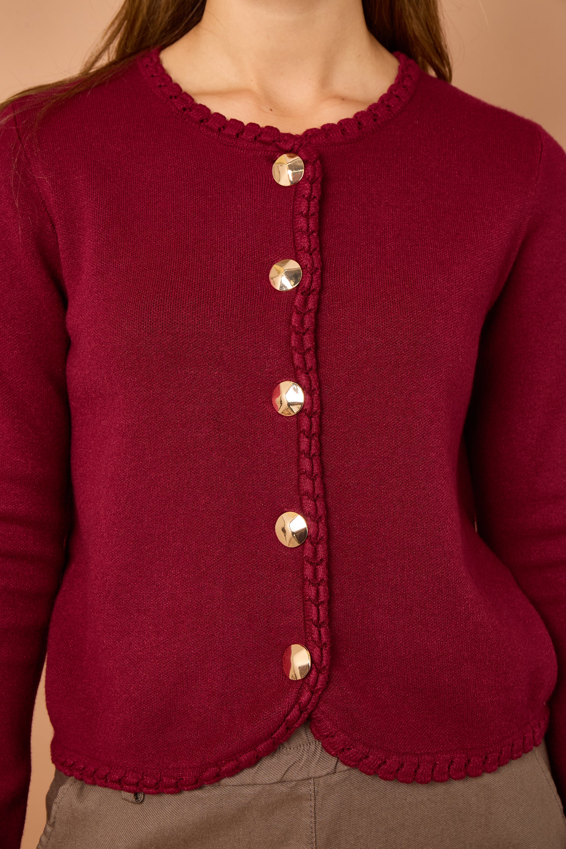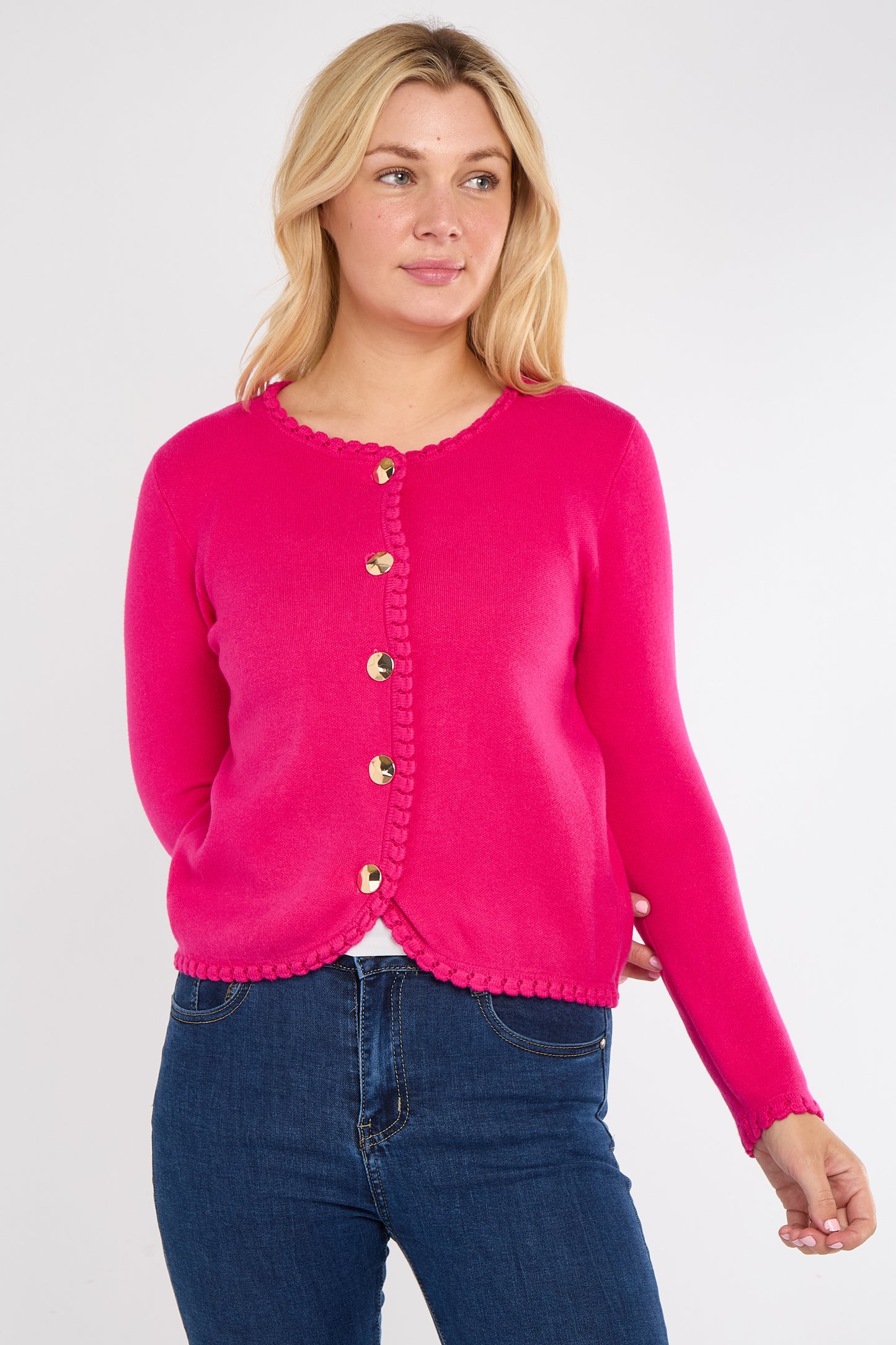 Add a touch of classic charm to your wardrobe with the Blanket Stitch Gold Button Cardigan. Crafted from soft, cozy knitwear, this cardigan features elegant blanket stitch detailing along the edges, complemented by striking gold buttons that bring a sophisticated finish.