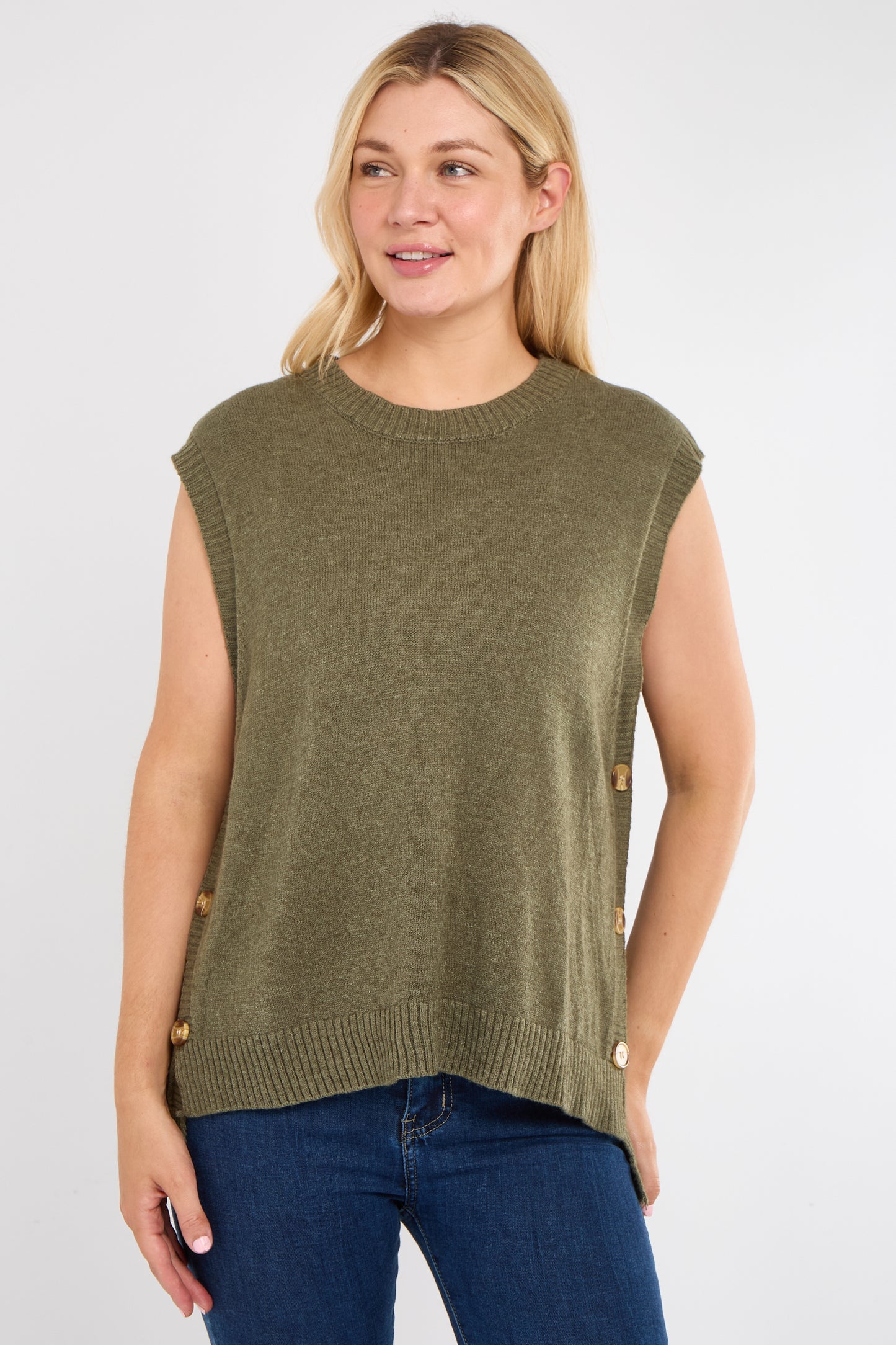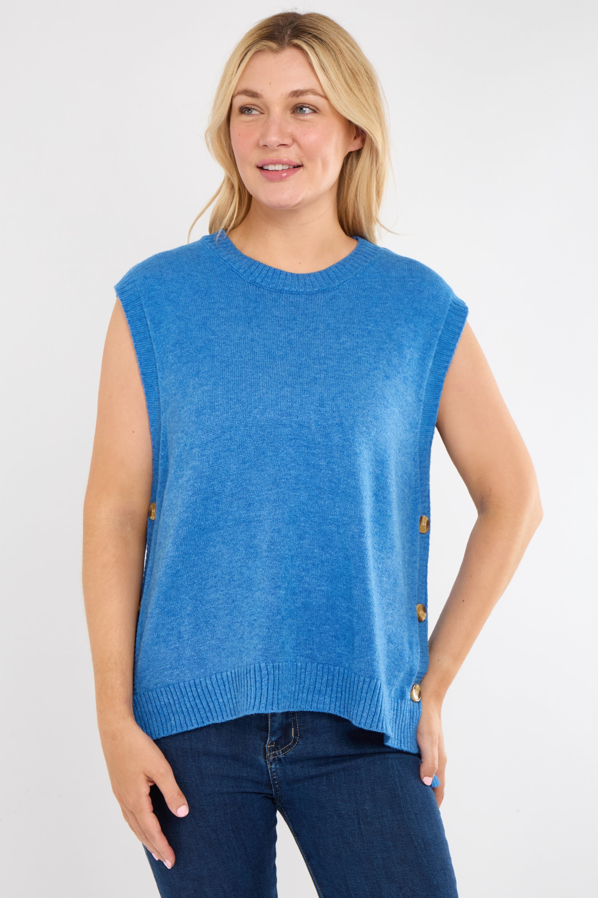 Wrap yourself in elegance with our Side Buttons Knitted Vest. The sophisticated design, coupled with stylish side buttons, elevates this jumper to a fashion statement. Perfect for adding a touch of chic warmth, the ribbed edges complete the look for a timeless and versatile accessory.